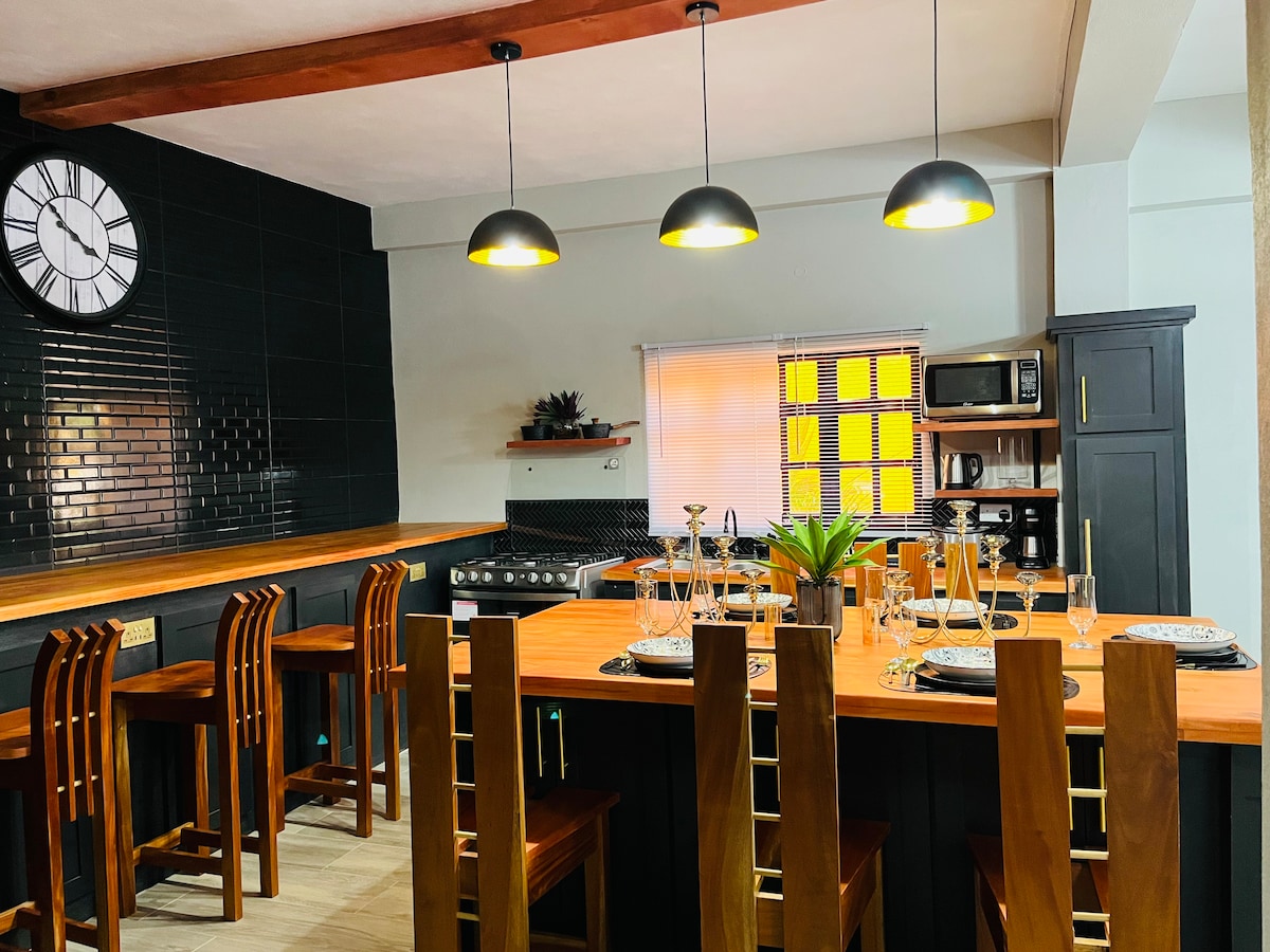 Welcoming people of all races and gender types. Come live well on vacation or business. This fully furnished luxury offers a tranquil experience in an ideal location with close proximity to beaches, restaurants, malls, gas stations and night life. The fenced property has an electronic gate, parking area, security cameras and a friendly, alert German Shepherd. Need daily cardio? Access to this space is up 2 flights of stairs as seen in photos. Go ahead and reserve those dates!
