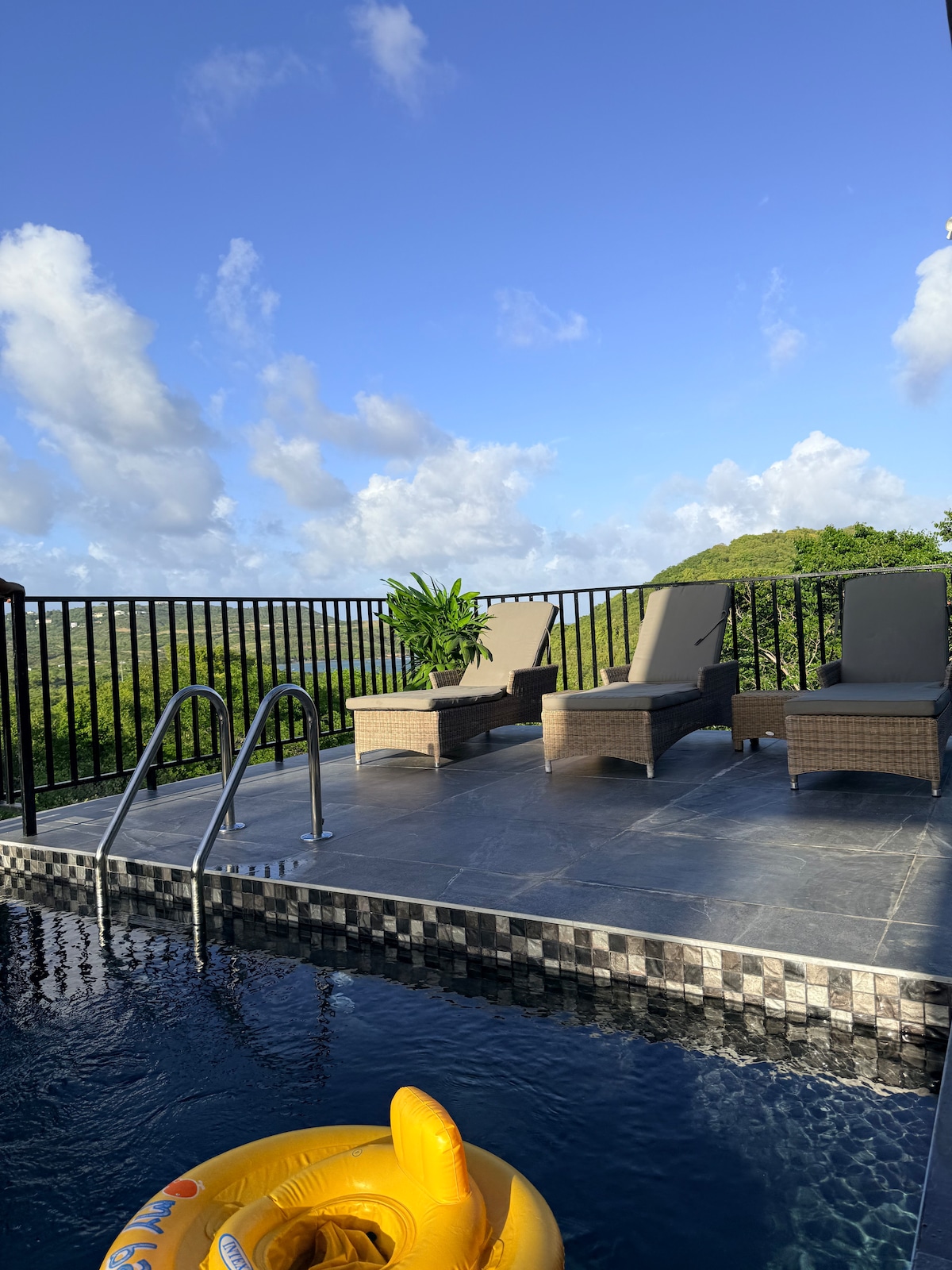 Entire lower level of newly constructed modern villa with concierge, located on the northern tip of the island, on the prestigious Cap Estate, with unobstructed views of the ocean & neighboring island Martinique. This 2 bedroom unit features a veranda, green space, living room & fully equipped kitchen. Lounge by a gorgeous 65 feet (20m) long infinity lap pool & sunken fire pit. Villa Imuhar offers a hotel appeal with a home feel with the option of a full time cook & meals prepared to your palate