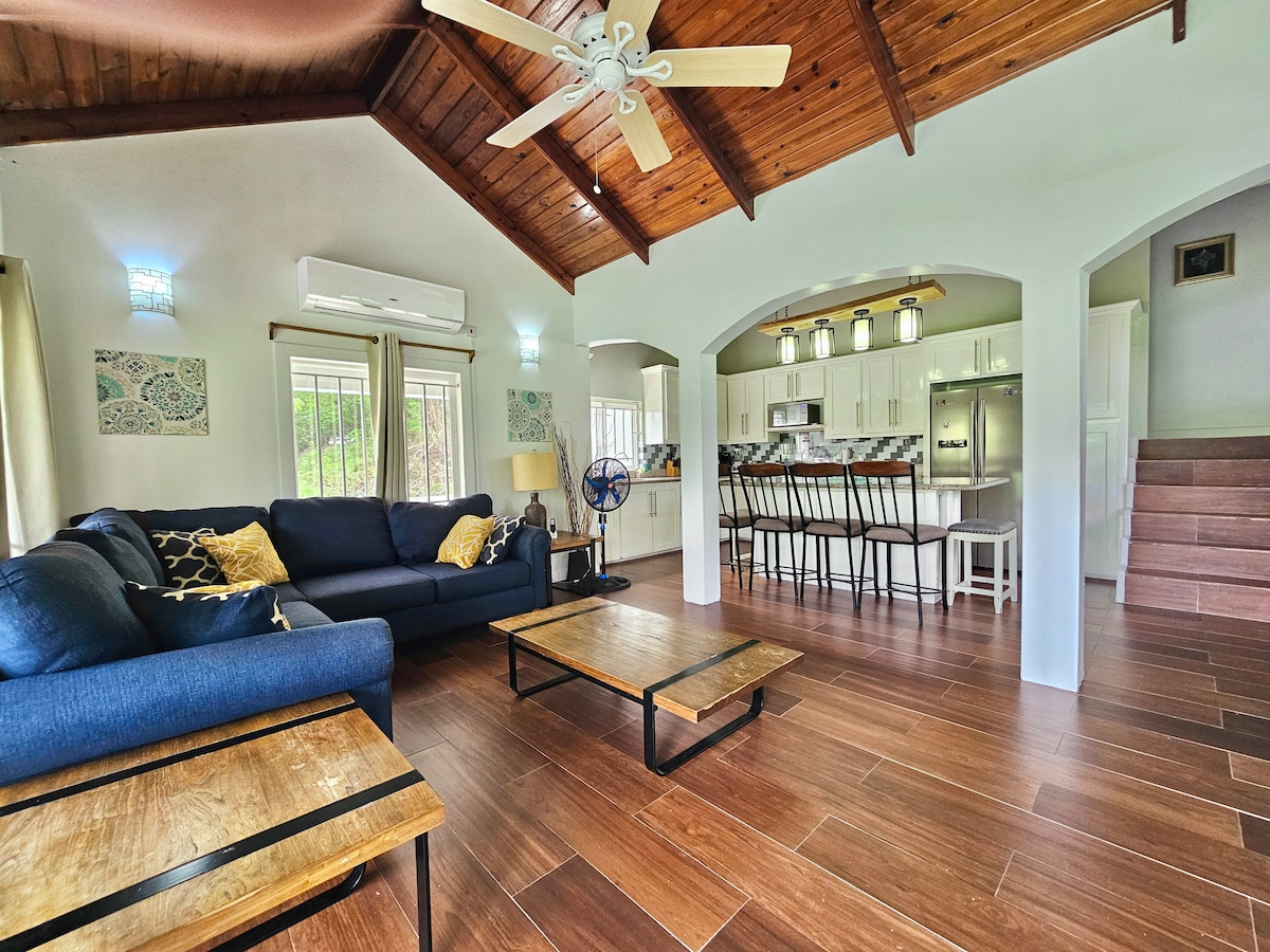 The Caribbean style ambiance of Aegis is special, the spacious veranda of this top floor of the house offers a dining experience with spectacular views. Aegis is a comfy cool place to stay, minutes away from the Marina, Rodney Bay & beaches in the north of the island. With 3 bedrooms Aegis is perfect for 1 to 6 guests. A spacious top floor of the house with your own entrance, gates and privacy.