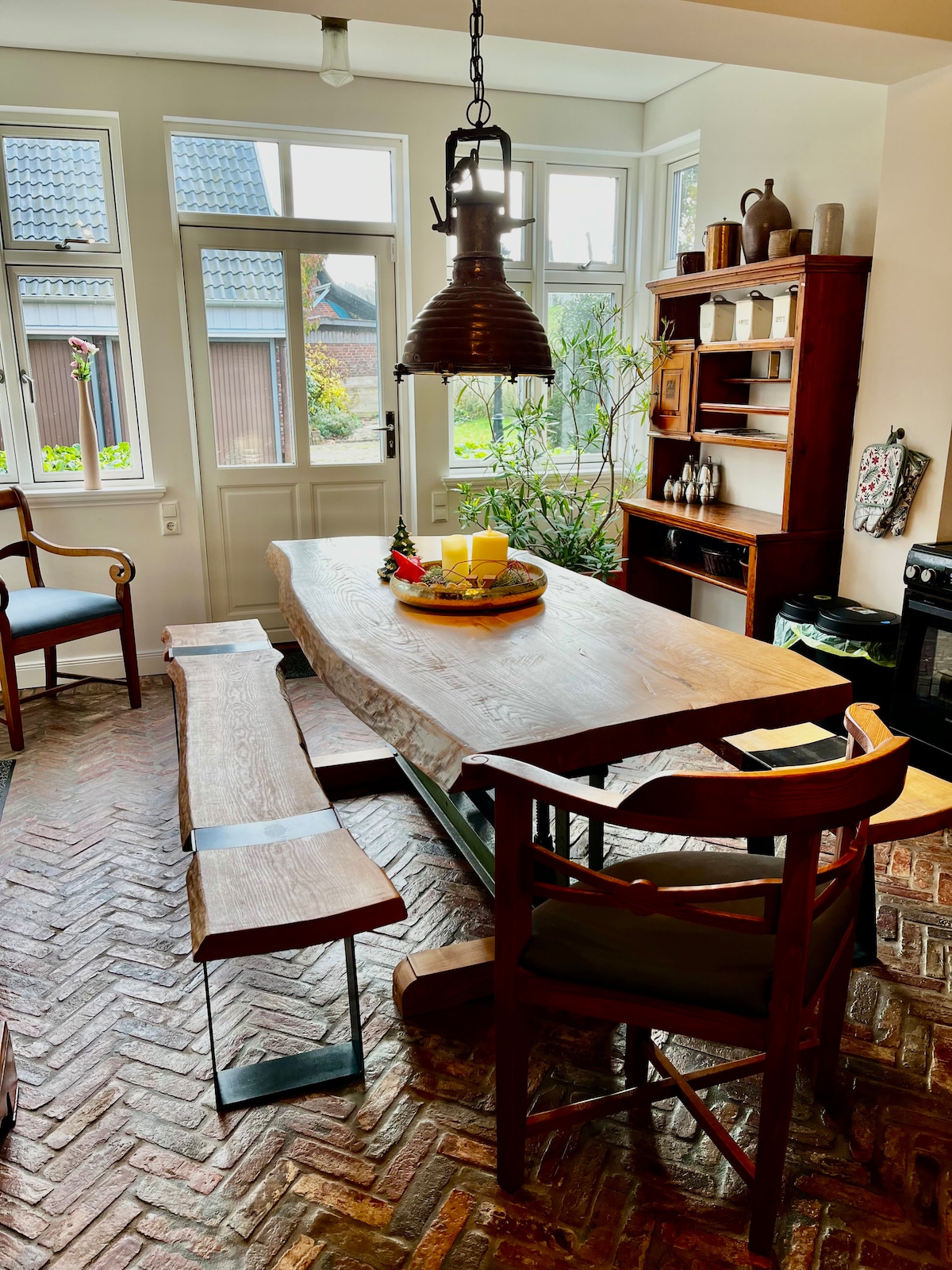Ein Schmuckstück im Kehdinger Moor - persönlich und mit Liebe eingerichtet, in einem nagelneuen, aber im alten Stil errichteten Landhaus auf 8.000 qm Grundstück. Zehn Autominuten zum Elbstrand, eine Viertelstunde ins idyllische Stade, eine gute Stunde nach Hamburg - mit separatem Zugang, eigenem Balkon und Sitzmöglichkeit im Garten. Die meisten Möbel stammen von Antik oder Trödel, dennoch sind Wohnung und Küche topmodern ausgestattet (Smart-TV, WLAN, Induktionsherd, Spülmaschine u.v.m.).
