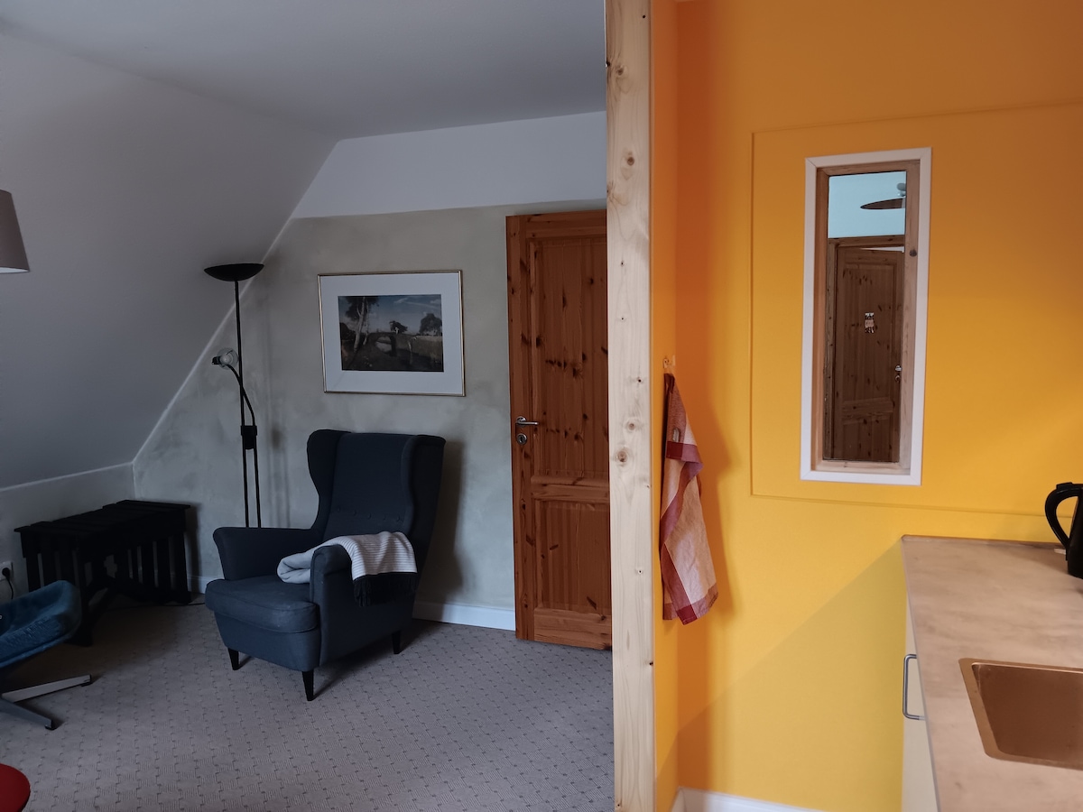 Die 60 qm große Wohnung befindet sich im DG eines Einfamilienhauses in ruhiger Sackgassenlage im Randgebiet von Hamburg. Ich wohne im Erdgeschoss. Ein Supermarkt ist fußläufig in 10 Minuten zu erreichen, die nächste Bushaltestelle in 3 Minuten. Mit Bus und Bahn oder mit dem Auto ist man in ca. 40 Minuten in Hamburg. Die Wohnung bietet 3 Schlafzimmer, ein großes Bad, eine Wohnküche und einen geräumigen Flur. Stabiles Glasfasernetz ist vorhanden.