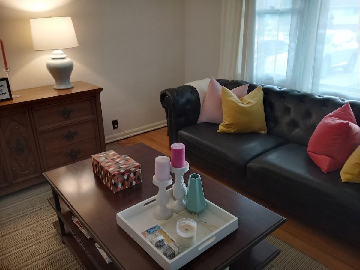 Great space to relax and get comfy in our non smoking home. Super clean, cute and cozy home nestled in a quaint neighborhood. You can chill out on the front porch, relax in the living room or take a soak in the tub. This great location is minutes away from downtown Wyandotte where you can stroll down the main street and enjoy shopping and dining with a view of the river. Second bedroom doubles as an office with a full size futon and has access to a washer and dryer in the house.