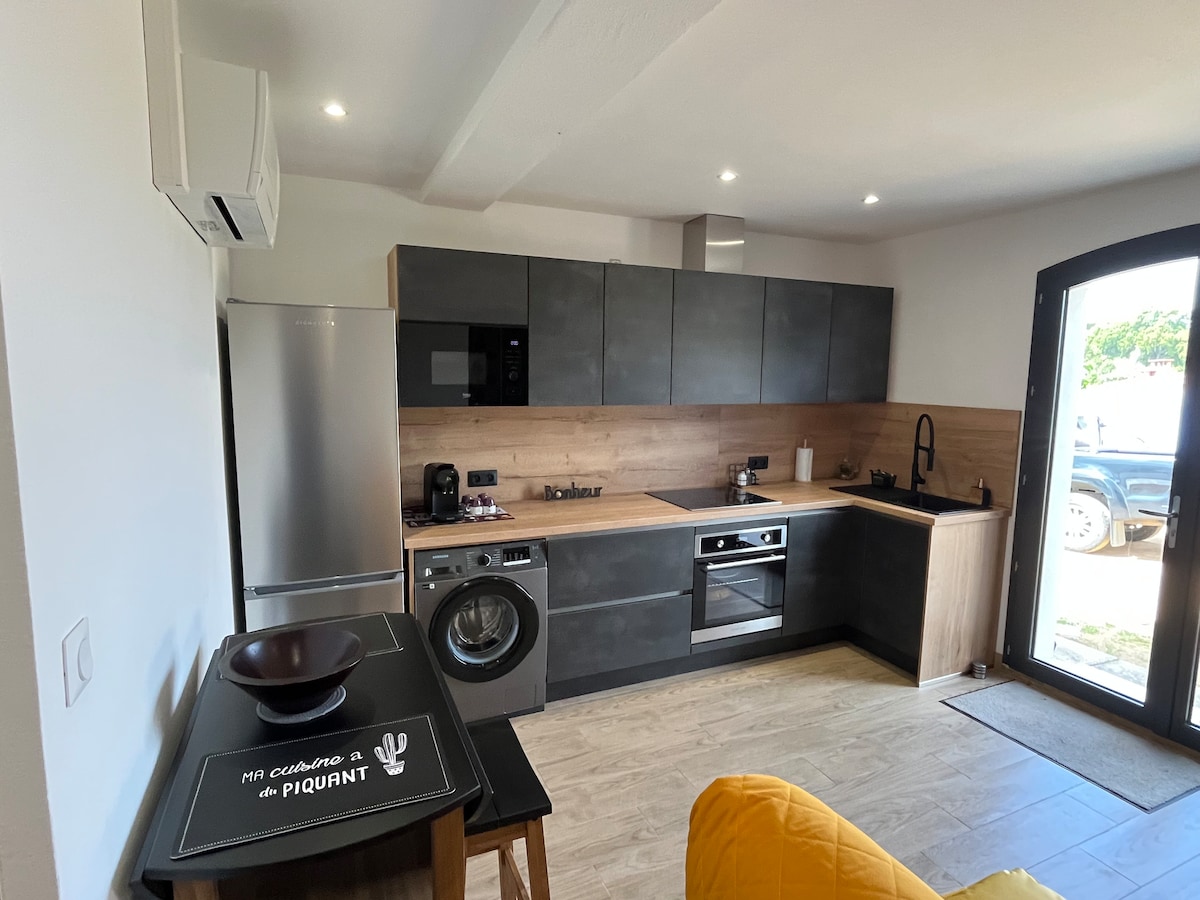 Agréable appartement de 50 m2 en rez de jardin d'une villa, situé au calme à l'entrée de Propriano , à 5mn des plages. Le logement dispose d'une grande pièce de vie avec cuisine américaine toute équipée , un coin repas ,une salle de bains avec douche , wc et bidet. Une chambre accueillant un grand lit (draps et serviettes fournies) . Idéal pour une étape ou un séjour en couple. Il dispose d'une jolie terrasse et d'un jardin. Un parking gratuit est à disposition, ainsi que le wifi .