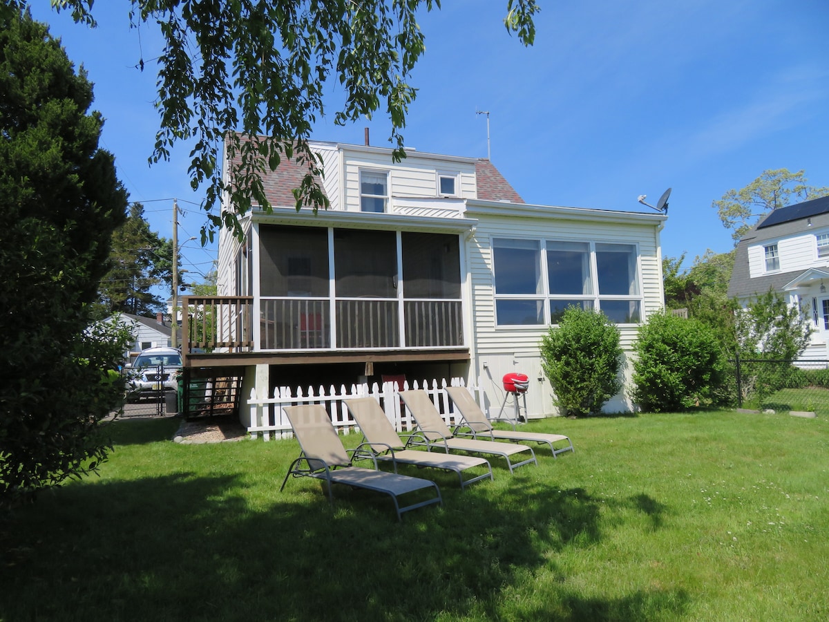 Enjoy your stay in this peaceful waterfront cottage. After the day relax on the 3 season screened- in porch or climate controlled sunroom watching the winter waterfowl on the wintery cove or relax in the backyard next to the fire pit with hot coco. Walking distance to Ocean Beach Park, Waterford Town Beach. Within 30 minutes of Niantic, downtown Mystic, Ferry's to Block, Fisher's and Long Islands, by museums, the Nautilus, Mohegan and Foxwoods Casinos, tons of great restaurants