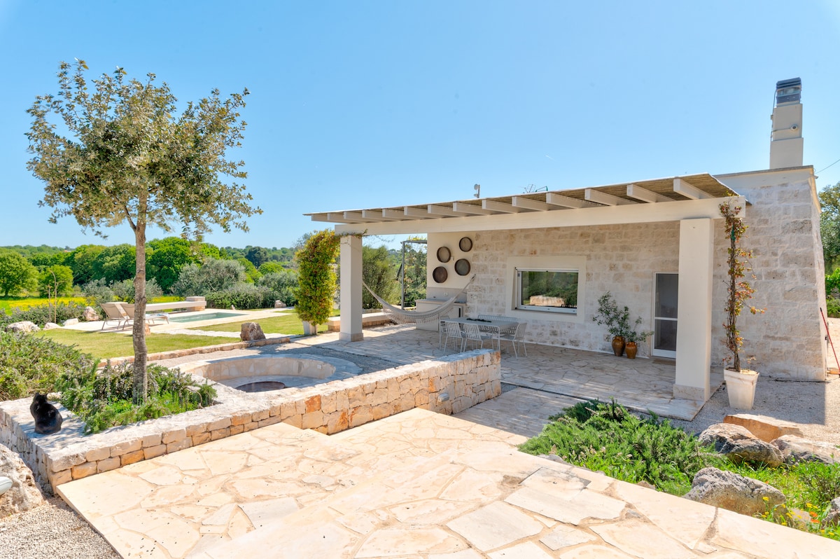 Uma Lamia antiga, recentemente restaurada, localizada no campo no famoso Valle d'Itria, entre Cisternino e Ostuni, a 25 min das praias e apenas a 15 min das vilas mais populares da Puglia. Viva o charme de hospedar-se numa casa de 300 anos, com tetos abaulados e paredes de pedra. Se perca no tempo sentado no pátio contemplando o terreno de 30 mil m2 com oliveiras e um muro com videiras seculares. Aproveite as noites frescas do campo tomando um drink na jacuzzi externa ou preparando um churrasco.