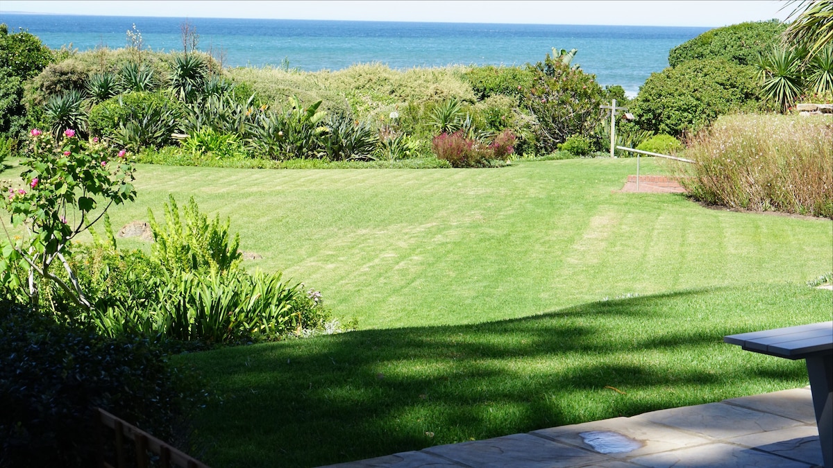 Uninterrupted ocean views in one of the most sought after locations. Direct garden access leads to manicured lawns and access to the sea. The town centre is a short drive or a stroll away, with many dining options. The Hermanus Golf Club,a premier 27-hole course, is around the corner. The flat offers a sizeable master suite with an ensuite, a fully equipped kitchen with a gas stove, open plan lounge. There is a TV with streaming options, uncapped WiFi. Lastly, a 5kW inverter keeps power on 24/7.