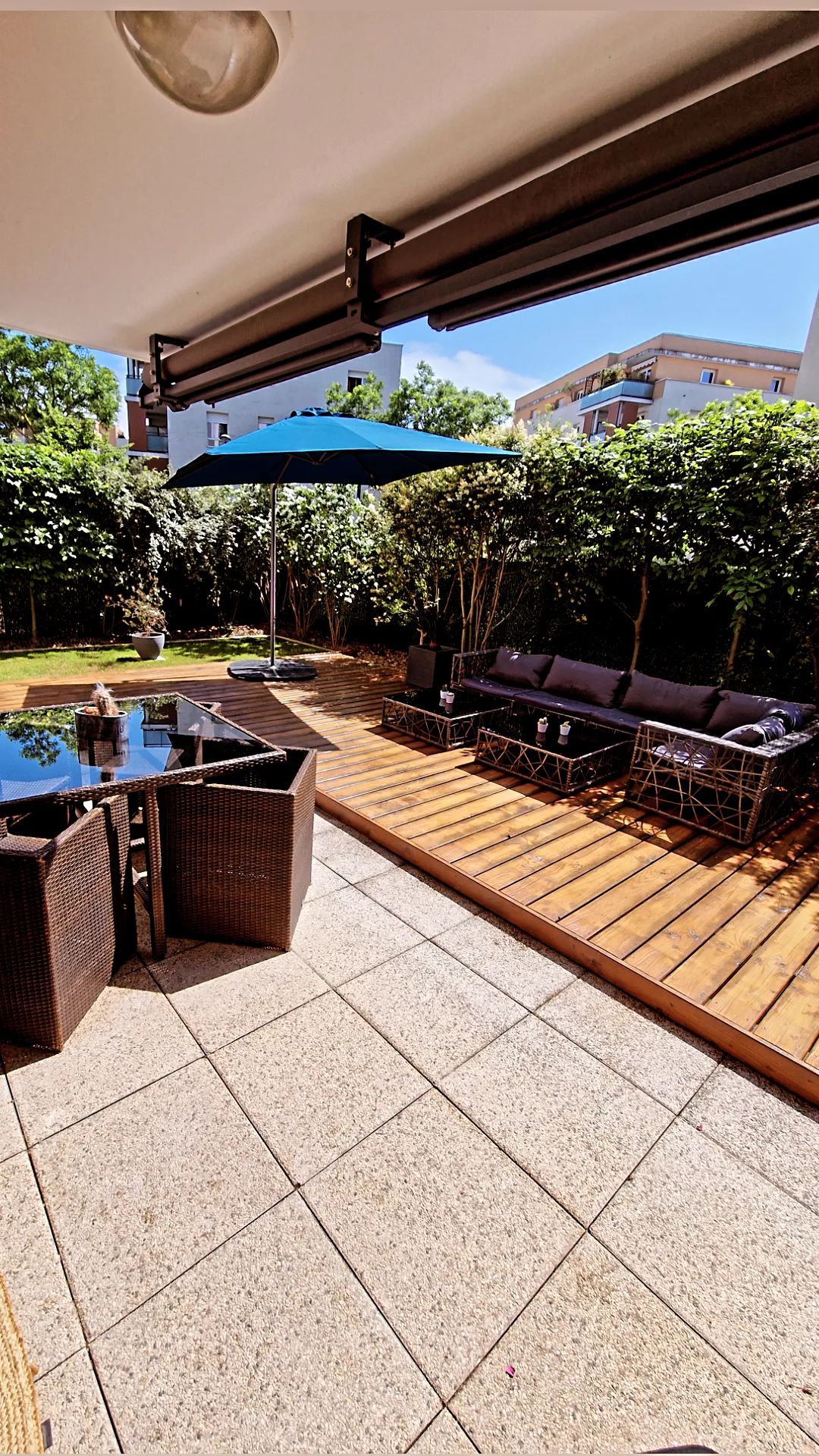 The apartment (45m²+ private patio) is located on the banks of the Saône, a 5-minute walk from the historic old Lyon district. Located on the 1st floor (no elevator), hillside of an old building on the bank of the Saône river, the building corridor is a little rustic (17th century). The apartment has been fully redesigned, keeping its authenticity. I made it my refuge, away from the hustle and bustle of Lyon. However, this place is not to everyone’s taste 😊. I describe later the pros & cons.