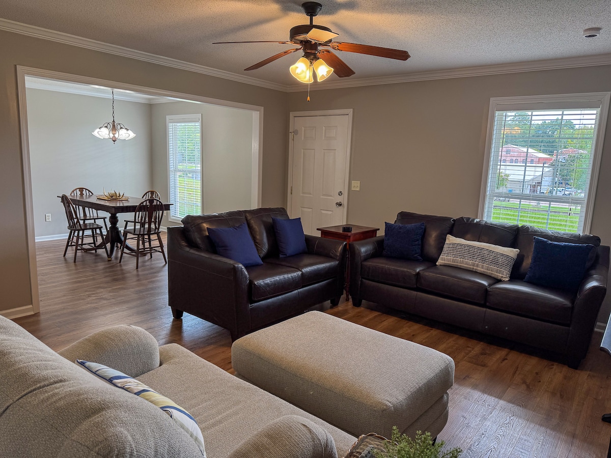 Looking for that perfect home for your next getaway? Come stay at our quiet, spacious home located ten minutes from downtown. The perfect place for a group of traveling friends, business, or a family looking for a peaceful stay. This spacious home includes 3 bedrooms, 2 bathrooms, and a queen sleeper sofa. Includes Netflix, self check-in, and plenty of parking. Enjoy watching the beautiful sunset, while having a cookout on the large screened-in back porch.