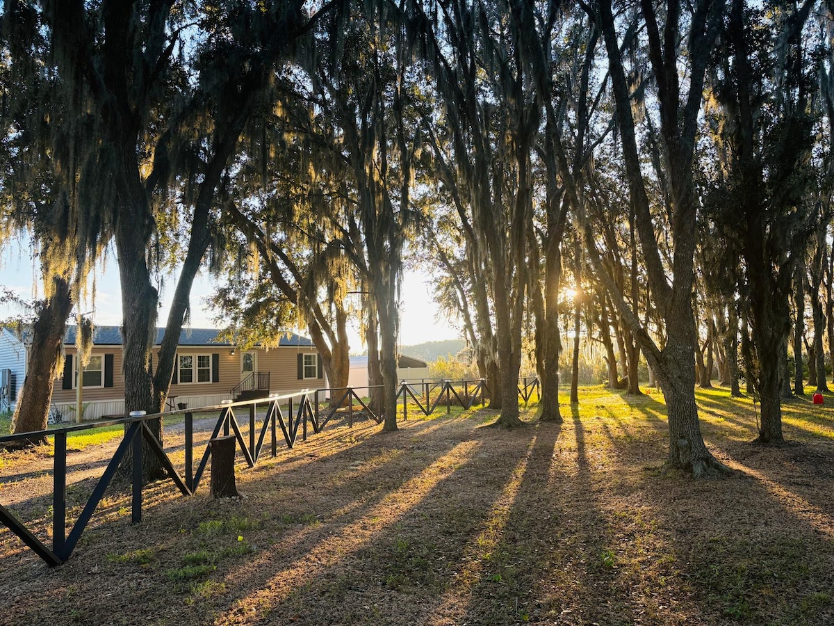 私人橡树林牧场篝火炉、烧烤和家庭度假胜地