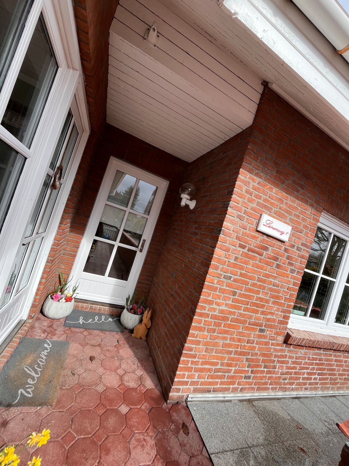 Dear holiday guests! The attractive holiday flat in a historic building in Grube offers all the amenities for a relaxing family holiday in a quiet location! A fully equipped kitchen with dishwasher, washing machine, 3 double beds, with free basic equipment: WIFI, bicycles, laundry service, smart TV, hammocks, numerous indoor and outdoor play facilities, 3000 square metre garden, sauna access await you on 2 floors and 70 square metres of living space. Best regards Elke & Benjamin