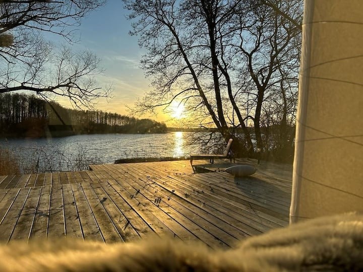 To klimatyczne miejsce jest dla ludzi szukających wytchnienia : cisza i bliskość natury - jeziora ( bezposredni, indywidualny dostęp do jeziora na szerokim tarasie), łąki , lasy Borów Tucholskich , a także możliwość aktywnego spędzania czasu ( kajak, łódka, rowery do dypozycji )- pozwolą na odzyskanie spokoju i sił witalnych. Domek jest urządzony w taki sposób, że umożliwia znalezienie zarówno przestrzeni indywidualnych, jak i strefy wspólnej przy kominku , obszernym stole czy na tarasie.