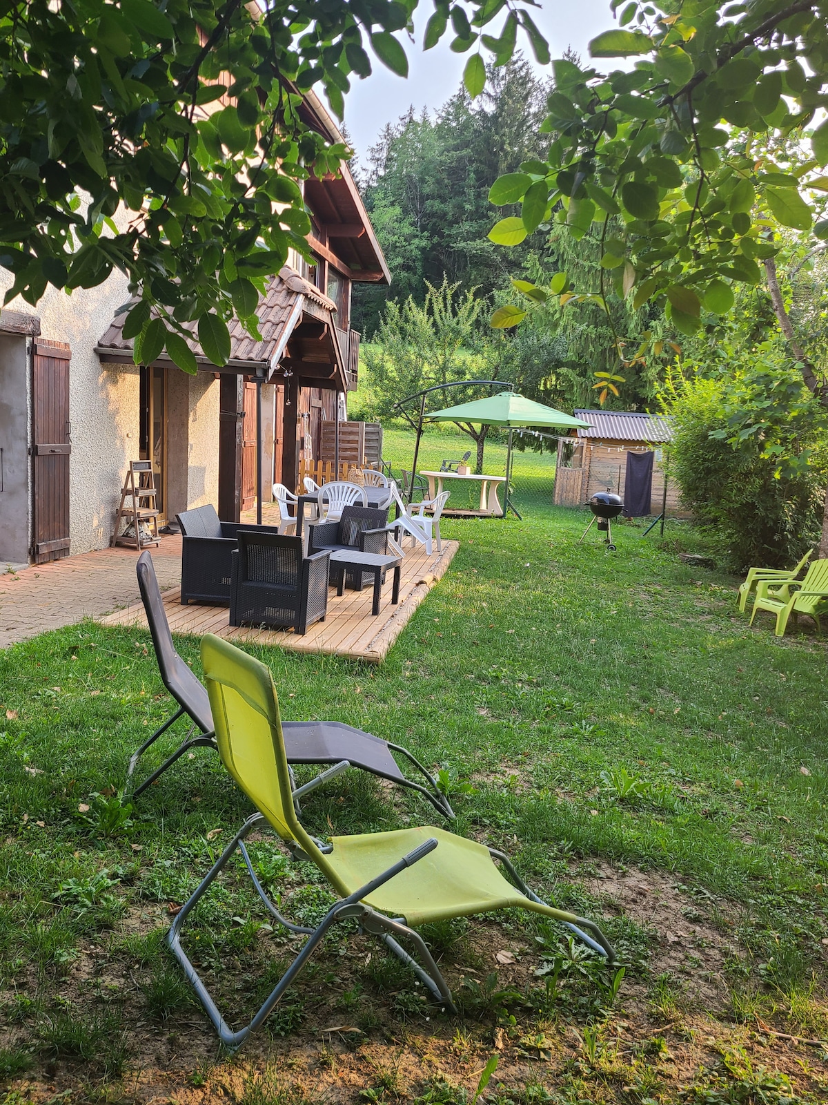 Nous sommes Anne (56 ans, passionnée de jardin, couture et décoration) et Nicolas (55 ans, passionné de parapente, ski de randonnée et VTT); Situé au rez de chaussée d'une authentique maison des Bauges, notre studio bénéficie d'un environnement calme et reposant. L'accès à une spacieuse terrasse couverte permet de profiter d'un cadre unique pour les amoureux de la nature. Vous serez à Annecy en 20 min, à Aix-les-Bains en 25 min, à Chamonix en 1h15.