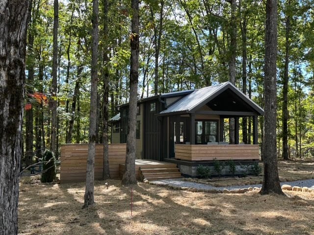 FEATURES A HOT TUB! Relax in style at Sweet Dee's (formerly listed as The Alexander), a luxury tiny home in the Retreat at Deer Lick Falls. Serene, tranquil, rustic, wooded setting with relaxation stations throughout the community. The Retreat at Deer Lick Falls is a gated luxury tiny home community in southeast Tennessee. The community is only 15 minutes from the University of the South in Sewanee. Guests of the Retreat also have access to Retreat at Waters Edge and it's lake.