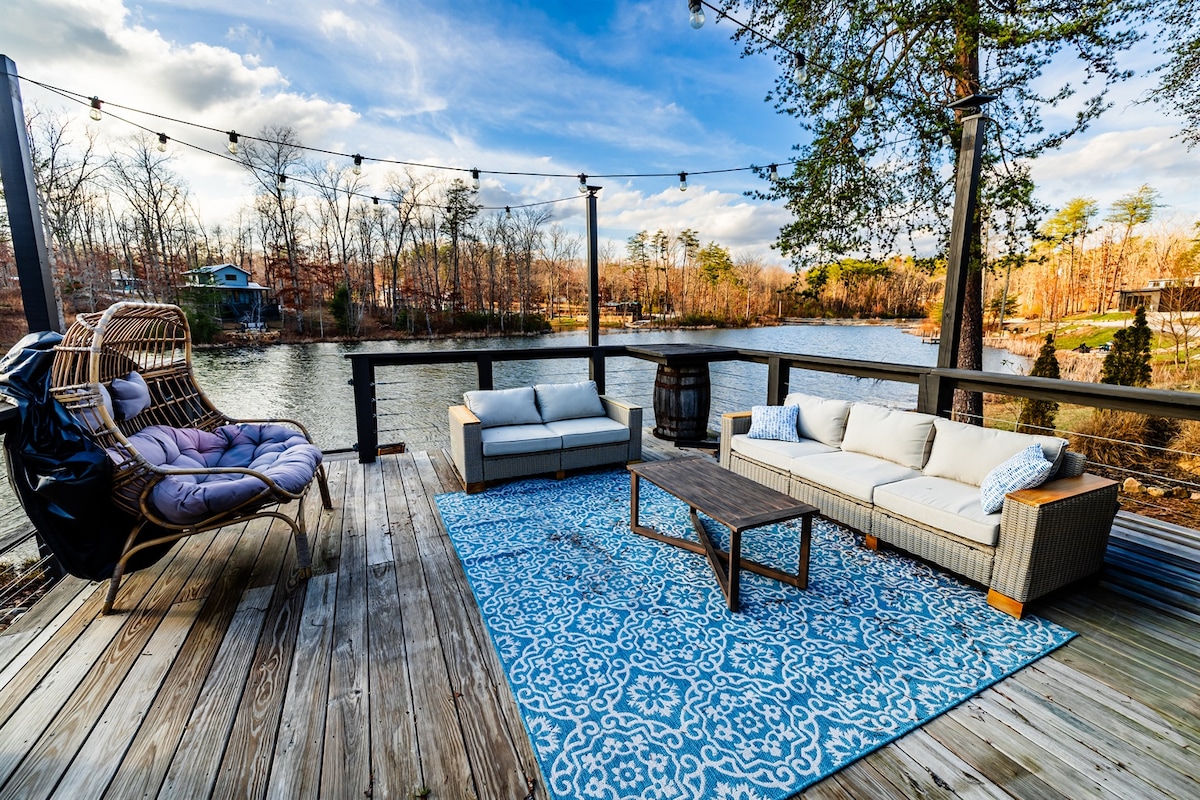 The Honeysuckle House is a luxury waterfront tiny home created for reconnection, rejuvenation and restoration. It is a respite where you can come and be one with nature as you look out upon the peaceful lake from the oversized screened-in porch, the open air deck or from the private fire pit area. This home sits on 1 acre with large, mature trees and has direct access to the lake for paddle boarding, fishing, kayaking or canoeing. The Honeysuckle House is the perfect place to come and "unplug".