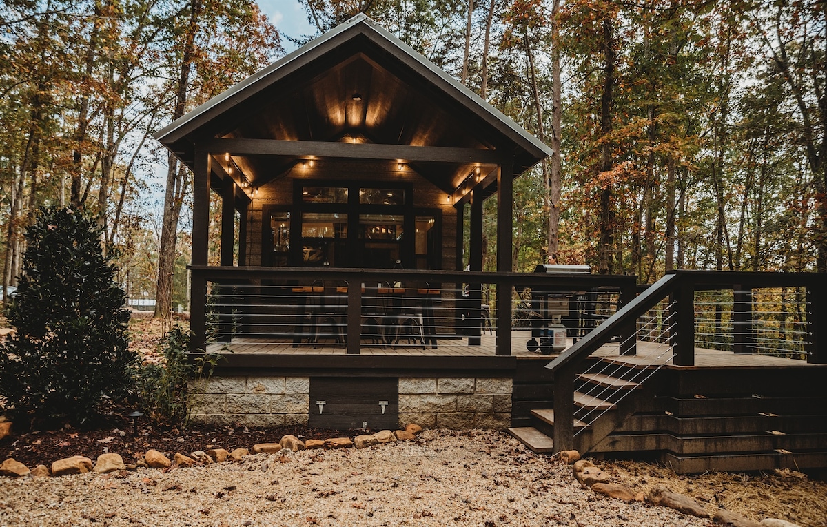 FEATURES A HOT TUB! Relax in style at Sweet Dee's (formerly listed as The Alexander), a luxury tiny home in the Retreat at Deer Lick Falls. Serene, tranquil, rustic, wooded setting with relaxation stations throughout the community. The Retreat at Deer Lick Falls is a gated luxury tiny home community in southeast Tennessee. The community is only 15 minutes from the University of the South in Sewanee. Guests of the Retreat also have access to Retreat at Waters Edge and it's lake.