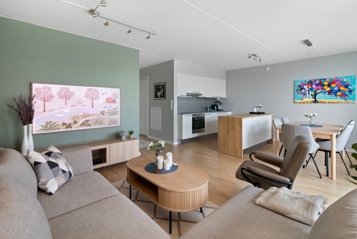 阳光充足的2卧室现代公寓,带阳台,靠近Grünerløkka