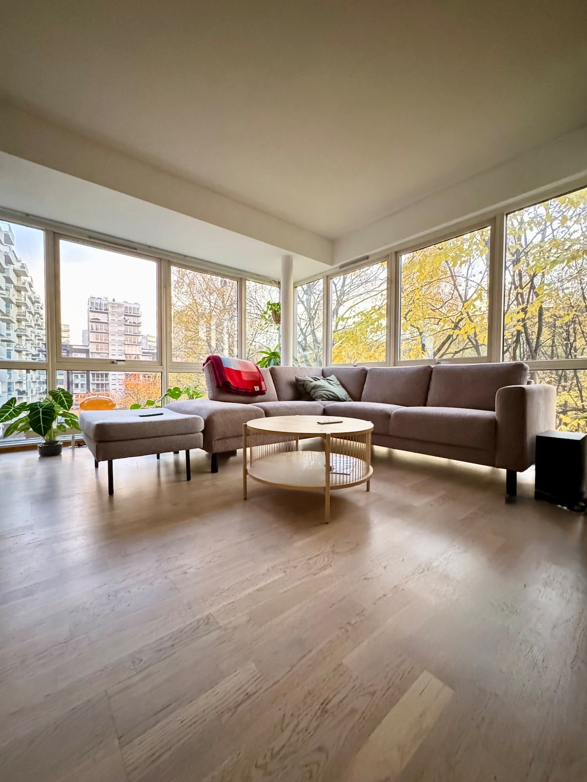Sentralt på trendy GRÜNERLØKKA - Lys hjørneleilighet med skandinaviske designmøbler, romslig hovedsoverom, og et mindre med utsikt til Oslo mest populære park, Sofienbergsparken. Wowfaktoren er 3 meter høye vinduer, egen sørvendt balkong, felles stille takterassen i 8 etasje med panoramautsikt over Oslo, og matbutikken i kjelleren. Ligger i stille gate med 5 min gjennom parken til restaurantene og shopping. Gå eller ta trikken til sjøen, badstuene, eller t-banen til alpin, ake og skiløyper.