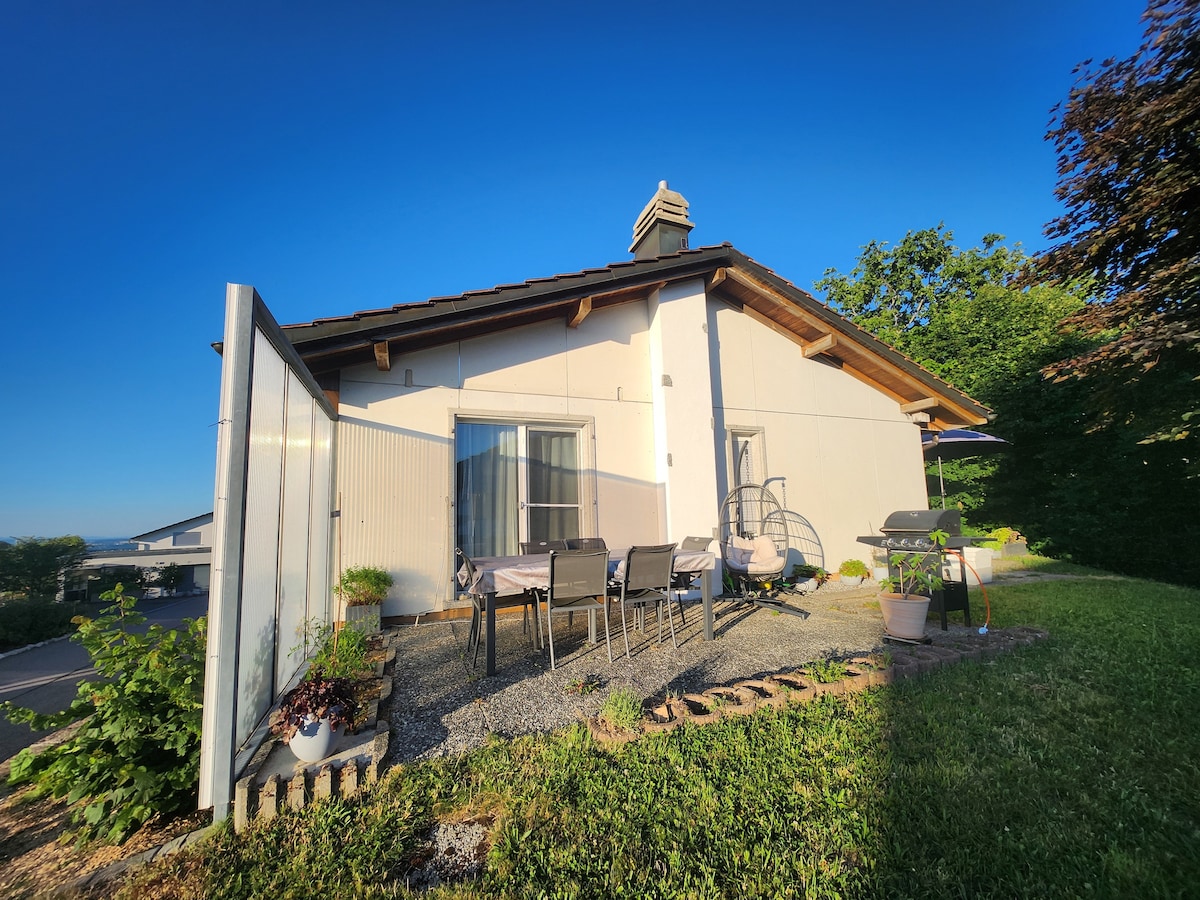 Chalet 4 pièces. Confortable avec beaucoup de bois.Accès en voiture. Prévoir des chaînes en hiver. Parking extérieur en bas du chalet. Escalier irrégulier avec de nombreuses marches. Logement pour non-fumeurs.Cuisine/salle à manger : cuisine avec petit réfrigérateur, four, sans lave-vaisselle.Salon : poêle, TV et Wi-Fi. Echelle vers mezzanine avec 1 lit double (futon).2 chambres avec lits doubles, 1 chambre avec lit simple. 1 salle de bain.Terrasse : Superbe vue. Barbecue à disposition. --