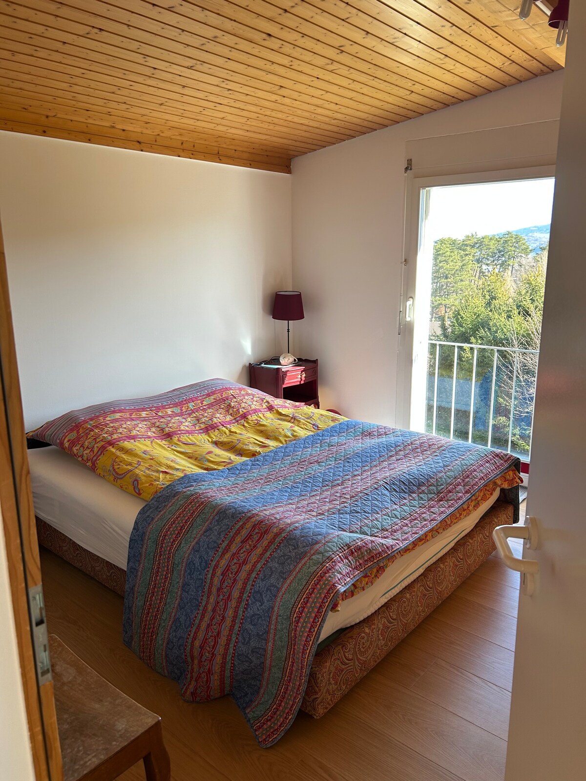 Chambre dans ma maison, dans un quartier tranquille, à 7 mn à pied du centre du village, bus, épicerie, boucherie, laiterie, fromagerie, kiosque et poste. À 5 mn à pied de la forêt, 4 km de l’autoroute, 5 km de la ville de Bulle et de la gare, 7 mn en voiture du lac de la Gruyère, 3 km de l’hôpital. Pour une personne très soigneuse des choses et respectueuse. Ne convient pas à personne allergique au chat. Personne musicienne bienvenue. On fume dehors.