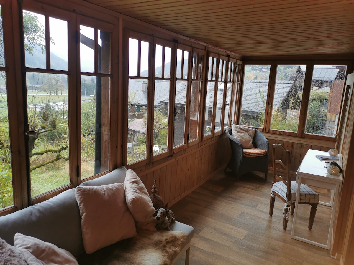 The apartment is built in a log cabin and has been tastefully decorated to suit the style. It is very cozy and comfortable. Underfloor heating is throughout and an additional electric fireplace is at your disposal. It is completely self-sufficient with all amenities except a washing machine. One of thetwo terraces, has a view of the stunning Gumfluh Mountain that is part of the Grand Tour of Switzerland and is quite a site. My wife and I love to meeting new people and to share this beauty.