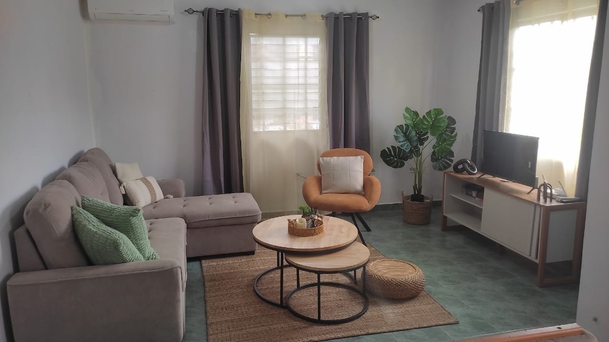 Relájate con toda la familia en este alojamiento tranquilo y acogedor con capacidad para 6 huéspedes. Cuenta con 2 recámaras con cama queen y sofa-cama queen en sala, aire acondicionado en recámaras y sala, 2 baños con agua caliente, Wifi, televisión con cable, netflix, prime en sala y en recámara principal, amplia cocina, sala-comedor, lavandería completa. Está ubicado a tan solo 7 minutos de David, 20 minutos de Boquete y cerca a ríos y piscinas. Aceptamos mascotas con un cargo de 40$.