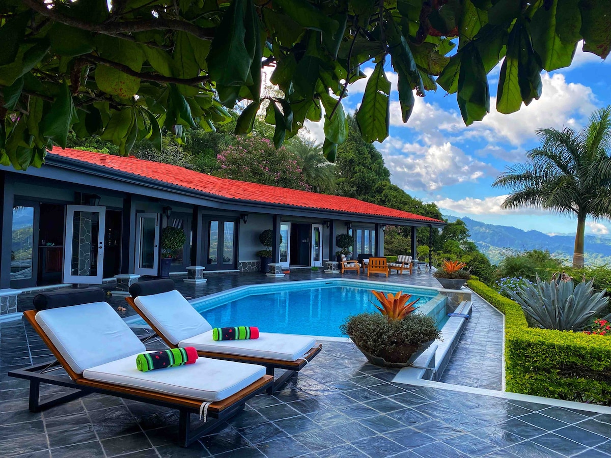 Make some memories at this unique and family-friendly peaceful cabin resort. Waterfall pools, peace and quiet, amazing native fauna, comfortable chic accommodations with a view from every cabin, excellent butterfly gardens, toucans, hikes. Enjoy nearby natural hikes, a tour of Poas Volcano, Peace Falls, etc. Restaurant and bar opened from 7:30 AM to 10:30 PM. Breakfast included in rental. Also available for groups (check availability) Sustainable Tourism and farming.