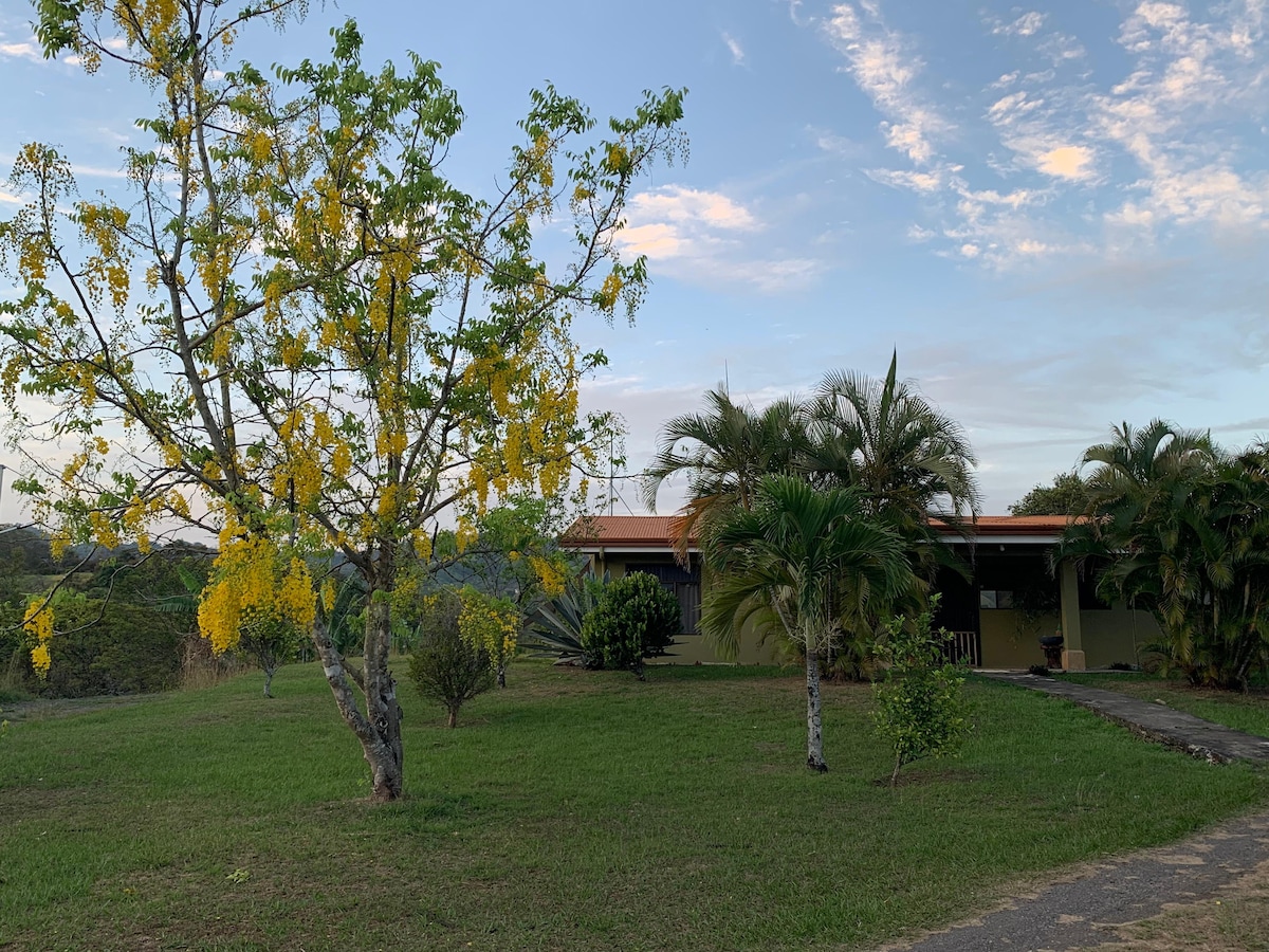 Welcome to our cozy apartment in Grecia, perfect for 2 guests (up to 3) with a double bed and sofa bed. includes WiFi,TV, a fully equipped kitchen, and a private bathroom with hot water. Located on a peaceful 2-acre property with fruit trees, just 4 minutes from downtown. Enjoy a traditional Costa Rican breakfast with pinto, eggs, natilla, and sweet plantains. Relax in your private cold-water garden tub after exploring nearby attractions like Parque Nacional Volcán Poás.Family-run and welcoming.
