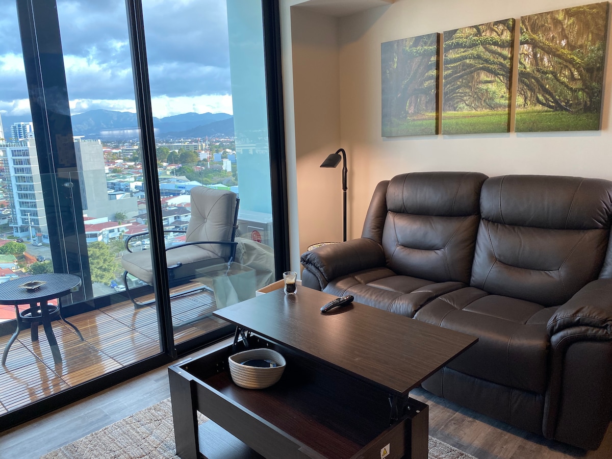 This is the life style that you deserve! Rated in Top 5% by Guests! Designed for long stays, remote working, medical tourism, one day tours base and digital Nomads. Comfy, Luxurious, Eco-Friendly, Fully equipped apartment in 14th floor in the Cosmopolitan Tower, the newest building in the best location of San José . Its located near the airports, Hospitals, Embassies, jogging parks, synagogue, restaurants and fast food, convenience stores, malls. Enjoy night city lights views everyday!