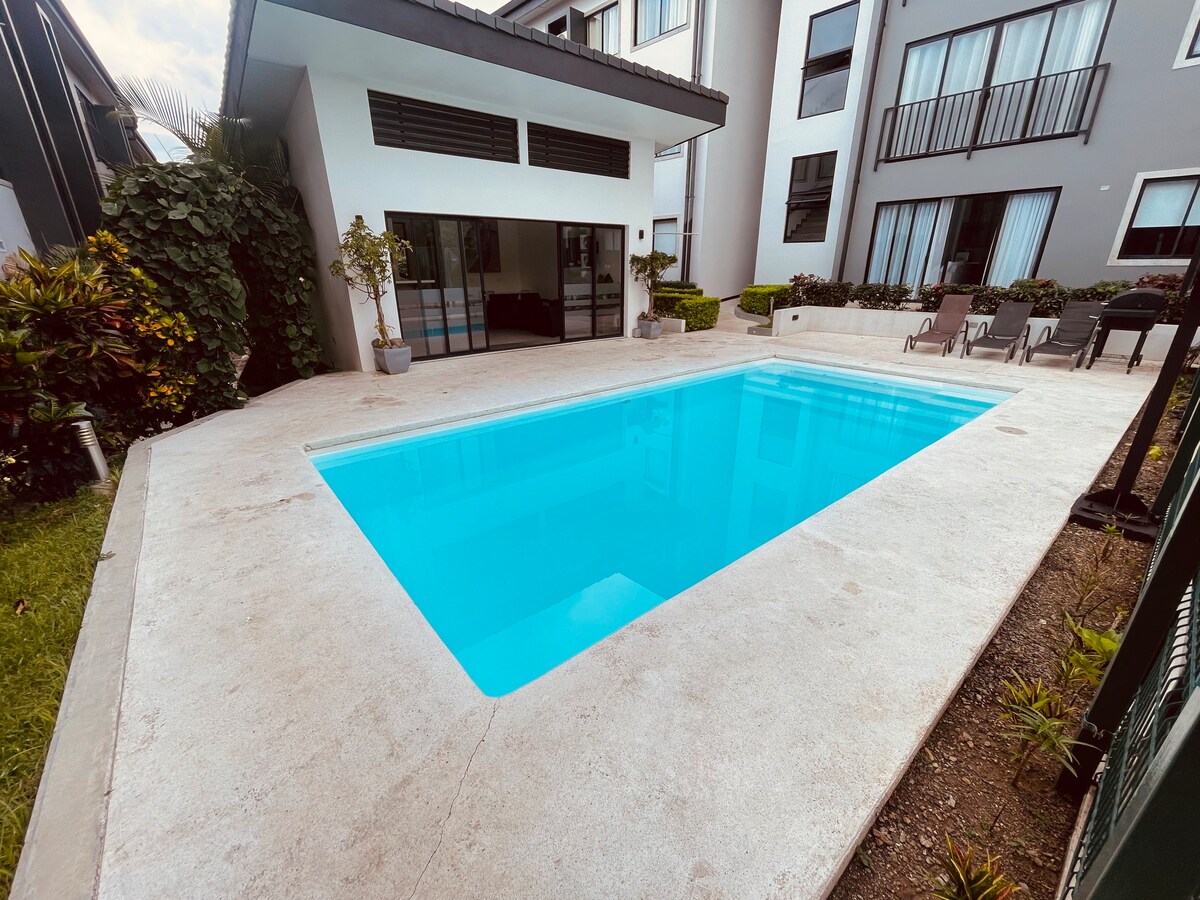 This special place is close to everything, making it easy to plan your visit. Perfect place perfect location. This 3-bedroom apartment is fully equipped and have everything you need during your stay. The apartment has Air Conditioner, kitchen, comfortable living room, 2 bathrooms. The condo Novatriana is great, it has a nice pool, gym, co-working area, playground, 24 hr security and more. Located 5 min away from Citymall, Walmart and the Airport SJO.
