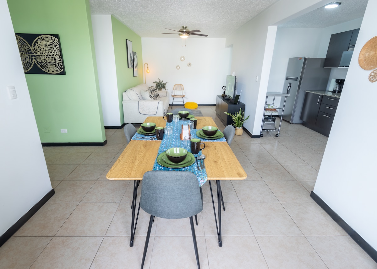 2卧室公寓,7分钟可达SJO机场-欢迎家庭入住!