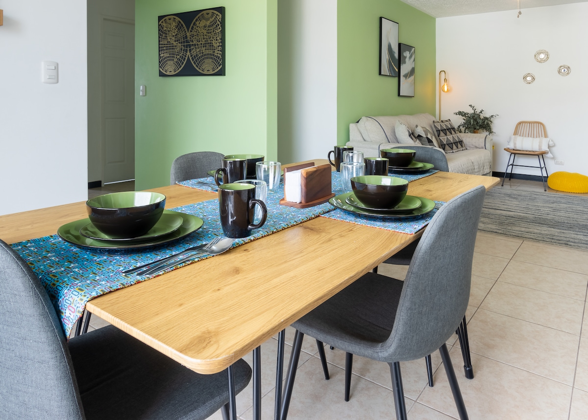 Our place is 100% equipped to rest, work and enjoy the "Pura vida" experience. You will have an unforgettable experience in nature, incredible views, a wide space to discover, and amazing sports and relaxation areas that will make you fall in love. The apartment is cozy, functional, modern and designed so that every detail contributes to an unforgettable experience. Enjoy the best of Costa Rica just 25min away from the Juan Santamaría airport.