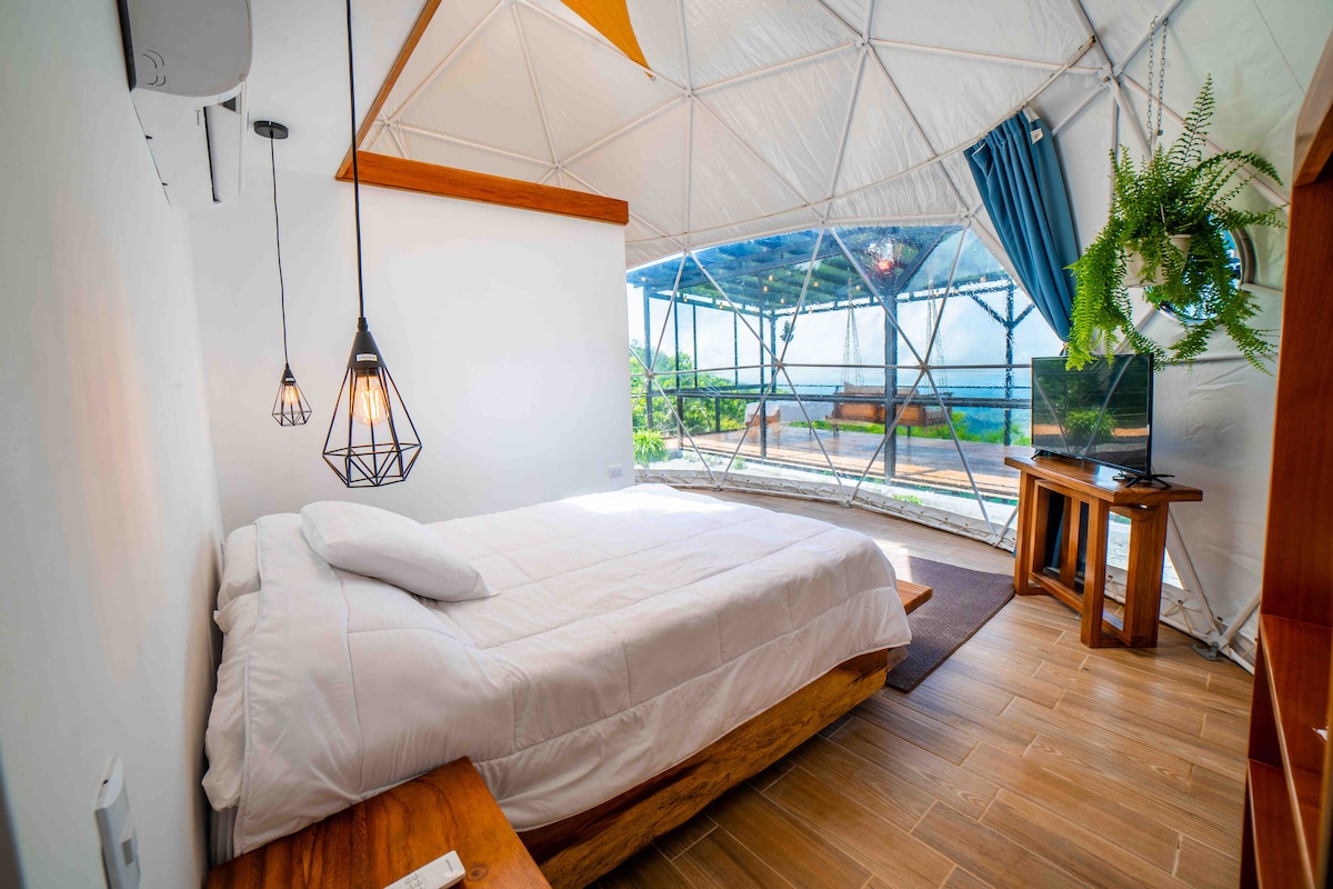 *** COMPLIMENTARY WINE BOTTLE WHEN BOOKING 2 NIGHTS OR MORE *** Welcome to Ananta Forest—our beautiful glamping dome in the cloud forest. Relax in the hot tub, loft net or hammock garden where you can enjoy stunning sunset, mountain, and gulf views. Equipped with 2 king size beds, panoramic views, kitchen, bathroom, and high speed internet, you'll have everything you need to create a memorable vacation. 5 min downtown 10 min adventure parks, Santa Elena Reserve 15 min Monteverde Reserve