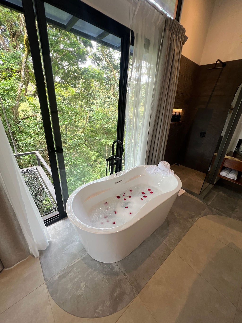 Si le gusta la montaña, la privacidad, disfrutar de él comfort pero ademas estar cerca de los principales atractivos y servicios de la zona, nuestro espacio es el ideal para usted! Disfrute relajarse en el jacuzzi rodeado de naturaleza, tomar el sol en nuestra net, avistamiento de aves, leer un libro, trabajar o simplemente descansar, todo inmerso entre los árboles. La propiedad está rodeada de bosque, donde puede observar el árbol de ficus uno de los más representativos de la zona