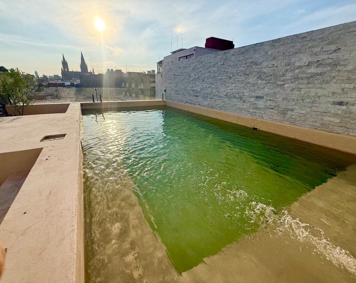 Perfect stay for family or friend groups given spacious bedrooms, privacy and comfortable outdoor patios and terraces! High-speed optic fiber wifi in every corner, dedicated work space & more Beautiful 2,700 sq ft house built at the turn of the 20th Century, beautifully renovated. Stay in a house from Old Guadalajara. Centrally located: walking distance from Degollado Theater, Catedral & near Paseo Alcalde. First place in 2020 Annual Prize for Conservation and Restoration of Historic Places.