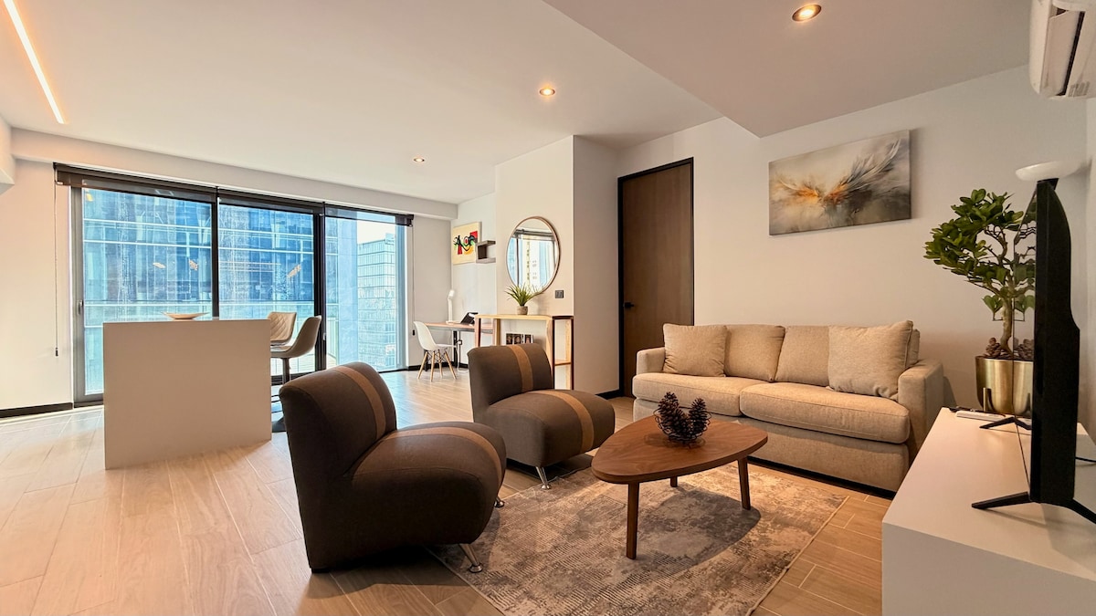 In the heart of the city, Punto Sao Paulo offers an urban oasis with a unique lifestyle featuring a wide range of luxurious services, comfort, and entertainment. Located in the city’s most prominent dining, social, and financial district. Fall in love with the organic minimalist style of our “Sao Paulo Vertical,” where the scent of wood and nature will transport you to an authentic, free, and natural place, creating a unique and unparalleled experience.