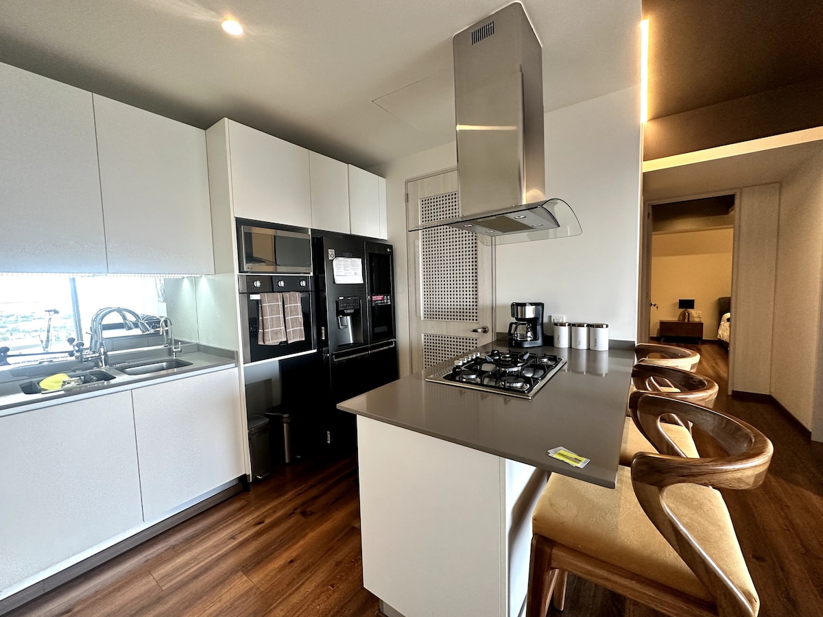 ✨ Disfruta de una estancia exclusiva en Lobby 33, uno de los edificios más modernos y lujosos de la zona Andares, en Zapopan. Este elegante departamento ofrece: 🛌 2 habitaciones con: una cama king una cama queen 🛁 2 baños completos con acabados de primera 🍳 Cocina equipada con todo lo necesario para cocinar 🛋️ Sala y balcón con vistas espectaculares de la ciudad 🖥️ WiFi de alta velocidad ❄️ Aire acondicionado 🚗 estacionamiento privado