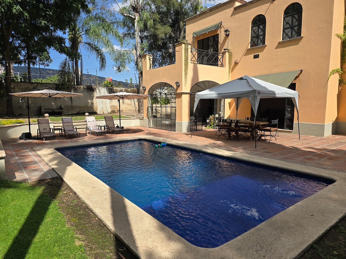 Casa tipo Hacienda Con chimenea, un área de jardín muy amplio, donde sentiras La Paz de de la naturaleza, y podrás disfrutar de tardes con tus hijos y mascotas o carne asada con amigos. y los niños pueden jugar y correr También contamos con alberca de 5 x4 y camastros WiFi, balcón con hamaca para disfrutar la vista Ideal para desconectarte de la ciudad. si estás cansado o estresado es el lugar indicado Estamos cerca de la barranca y zoológico de Guadalajara