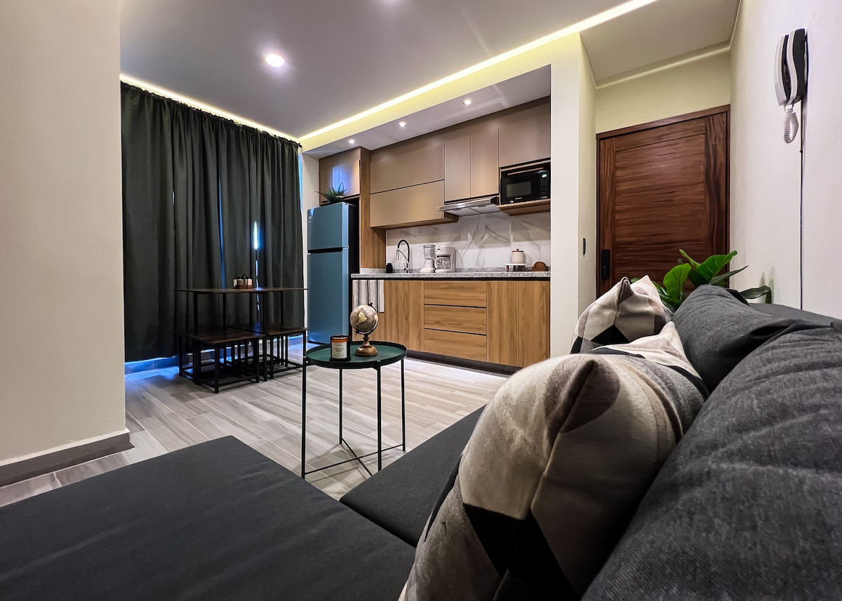 Ubicado en la zona financiera y cerca del Consulado Americano, este espacio en el piso 11 combina confort y limpieza. Con excelente ventilación e iluminación ajustable gracias a persianas blackout, cada detalle está pensado para tu comodidad, con equipamiento de alta calidad. El edificio ofrece gimnasio, terraza con vista panorámica, áreas recreativas y cine al aire libre. Incluye estacionamiento propio, lava-secadora y amenidades básicas para tu llegada. Ideal para viajes de trabajo o descanso.