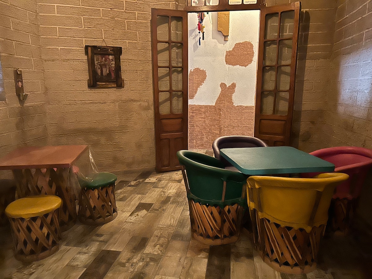 HomeStal! Se encuentra a tan solo 2 minutos del corazón de Tlaquepaque, Es un lugar maravilloso fuera de serie, en donde al entrar cada espacio te atrapará con su hermosura, color y su extravagante decoración. HomeStal, cuenta con una terraza, la cual tiene un Jacuzzi y un magnífico lugar en donde podrás disfrutar de música ya que te invita a relajarte y disfrutar tu día.