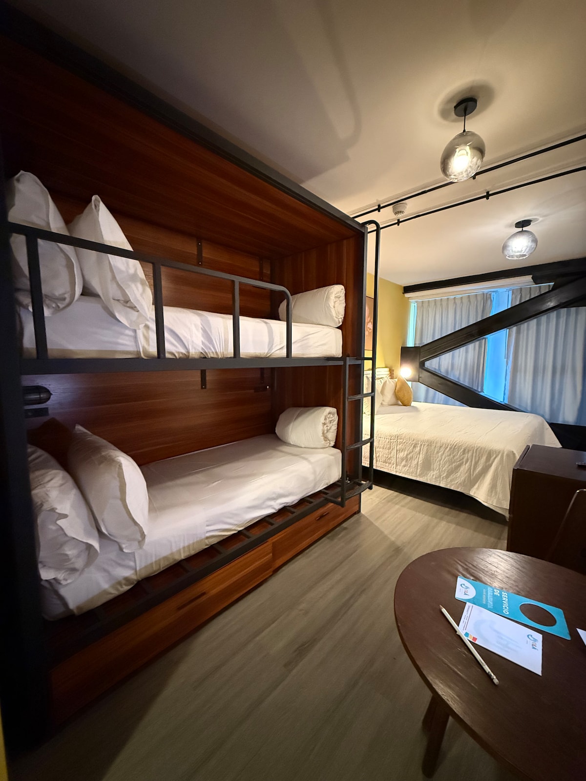 Disfruta de un espacio armonioso y funcional, ideal para familias que buscan comodidad en una de las zonas más vibrantes de Guadalajara. Equipada con una cama King Size ultra cómoda y una litera con dos camas individuales, esta habitación ofrece amenidades pensadas en tu confort: aire acondicionado, TV, WiFi, caja de seguridad y baño completo con regadera. Vive una experiencia única en la zona de fiesta y cultura de Chapultepec. Descubre los tesoros locales desde este moderno alojamiento.