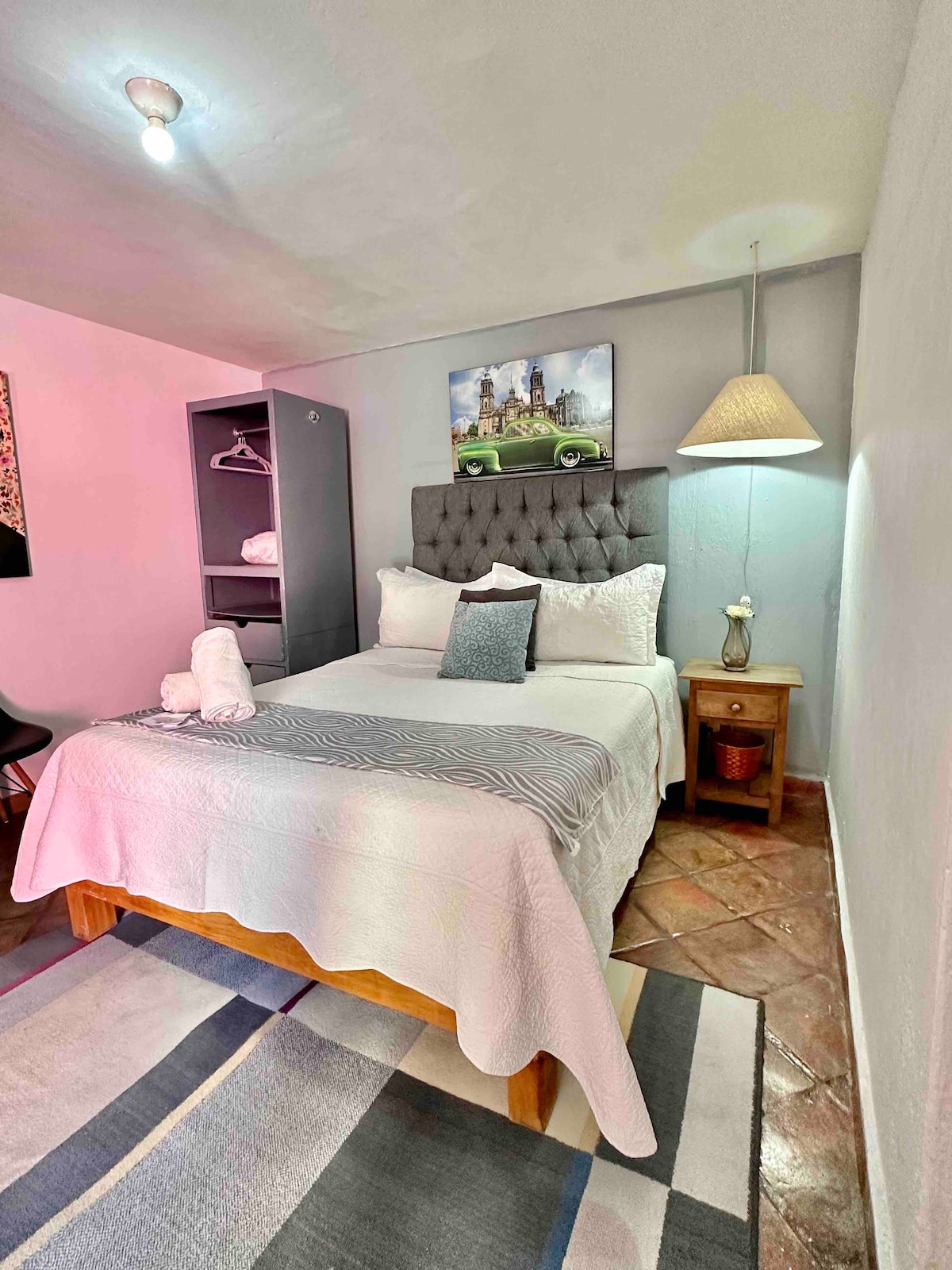 Disfruta de la sencillez de este PEQUEÑO alojamiento, tranquilo y céntrico, a 5 min. del centro de Tlaquepaque, a 20 min. del aeropuerto, y a 10 min. de la central camionera nueva. Está completamente nuevo y muy equipado con lo indispensable. Cuenta con una habitación con una cama Queen size. Además, un sofá cama en la sala. El lugar está anexado a otra vivienda, pero es totalmente independiente y exclusivo para el huésped. Mi familia y yo haremos lo posible por hacer su estancia agradable