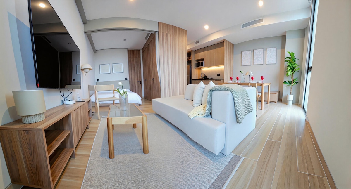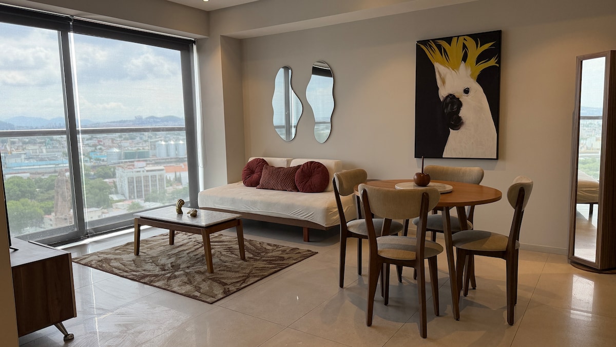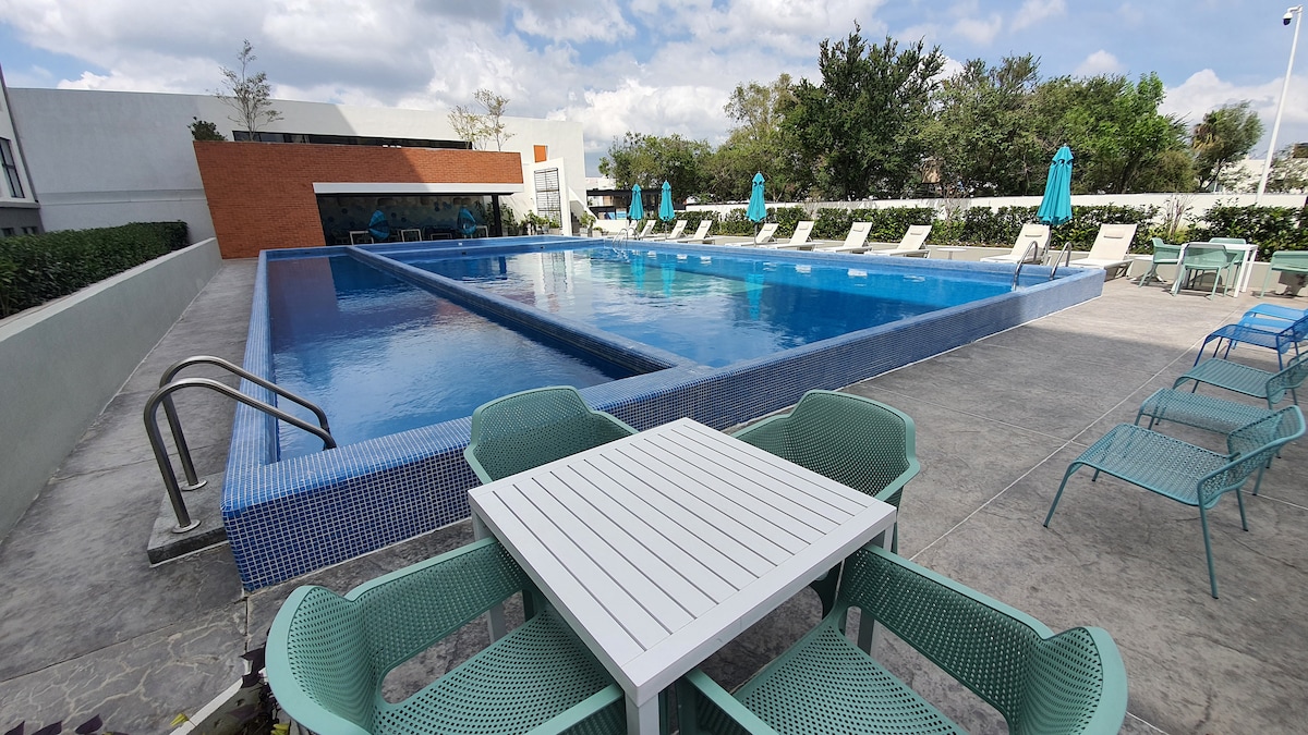 -22nd floor swimming pool -Beautiful gym with city views -Fully equipped for long stays -Parking available (at additional cost) - Housekeeping service: Once a week for reservation of +7 nights This deluxe studio with a balcony has everything you'll need for your stay. Located in a brand-new luxury tower in the Providencia neighborhood, near the Midtown Jalisco shopping mall.