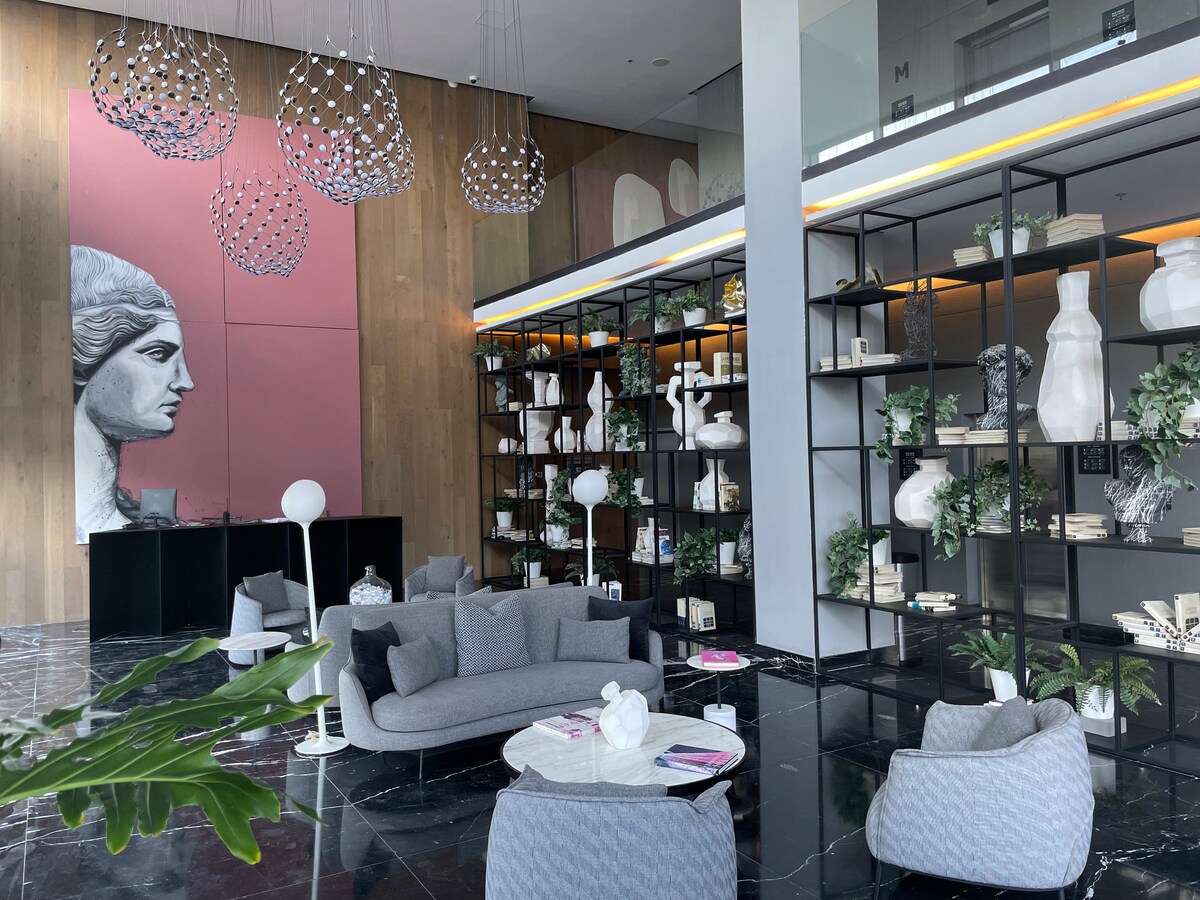 Our flat is inside WIT apartments, the most new and trendy place in town. The location is full of cool cafes, restaurants and boutique shops of local designers. Enjoy our pool, grab a beer in the rooftop with 360 views of the city or read a book in the artsy urban wall painted by the talented local artist Enrique Larios. We hope you get filled of creativity and fun during your stay.