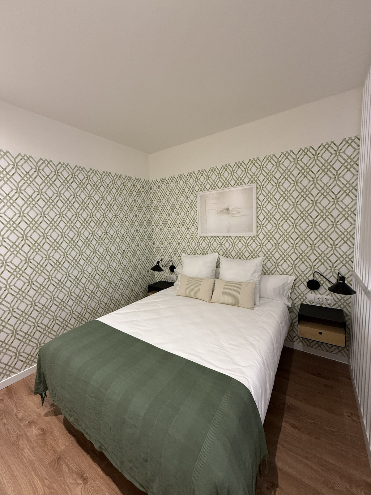 Bonito y luminoso apartamento resultado de una reforma integra de una modesta vivienda. Finalizada la reforma en octubre de 2021. Apartamento concebido y diseñado exclusivamente para el uso turístico. El apartamento tiene 2 dormitorios con cama de matrimonio, salón comedor, cocina totalmente equipada dos baños y patio privado. Situado a 5 minutos andando del casco histórico y de la estación de tren. Importante: Por favor antes de hacer la reserva leer las normas de la casa.