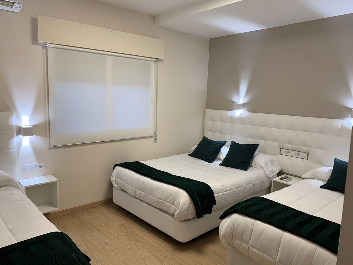 Habitación con 3 camas, baño privado, TV, Aire Acondicionado, Calefacción, WIFI gratuito. Lugar céntrico. A 2 min. andando del Palacio Multiusos, a 5 min. andando del Palacio del Infantado. Cerca estación de autobuses y buena conexión con A-2.