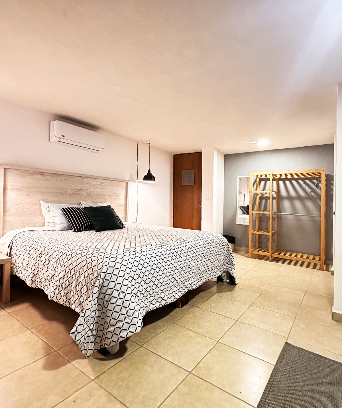 Recámara en planta baja con cama matrimonial, minicocineta y baño privado, pensada en el confort de 1 persona (6 m2) aunque suele albergar una 2da persona (costo adicional), en un espacio creado como santuario para aves diurnas y nocturnas. Nuestro check in comienza a partir de las 14.00 hrs., aún así podemos resguardar tu equipaje en nuestros locker sin costo adicional a partir de las 09:00 hrs. Nuestro early check in/late check out tiene un costo de $150 M.N por hora (sujeto a disponibilidad)