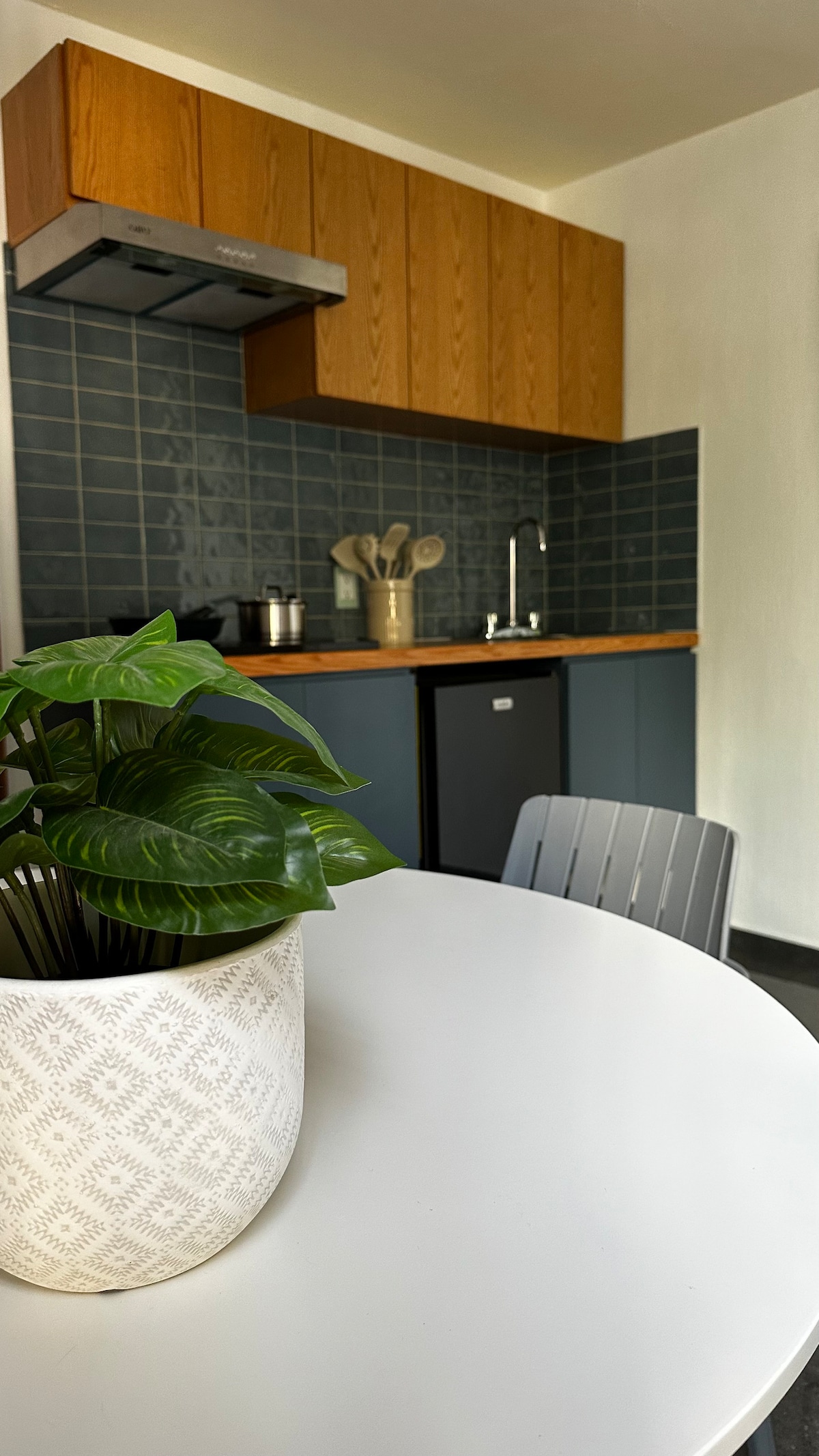 Disfruta de nuestros alojamientos diseñados especialmente para que tengas la mejor estadía en tu visita a Guadalajara. Es una propiedad recién remodelada, cuenta con 8 estudios y una agradable terraza. Nuestro estudio 5, cuenta con su amplio baño completo, una cómoda cama matrimonial, su smart Tv y una cocineta equipada, con acabados de lujo. Espacios limpios y un diseño que te invitará a relajarte y descansar, además de disfrutar una de las mejores zonas de la ciudad.