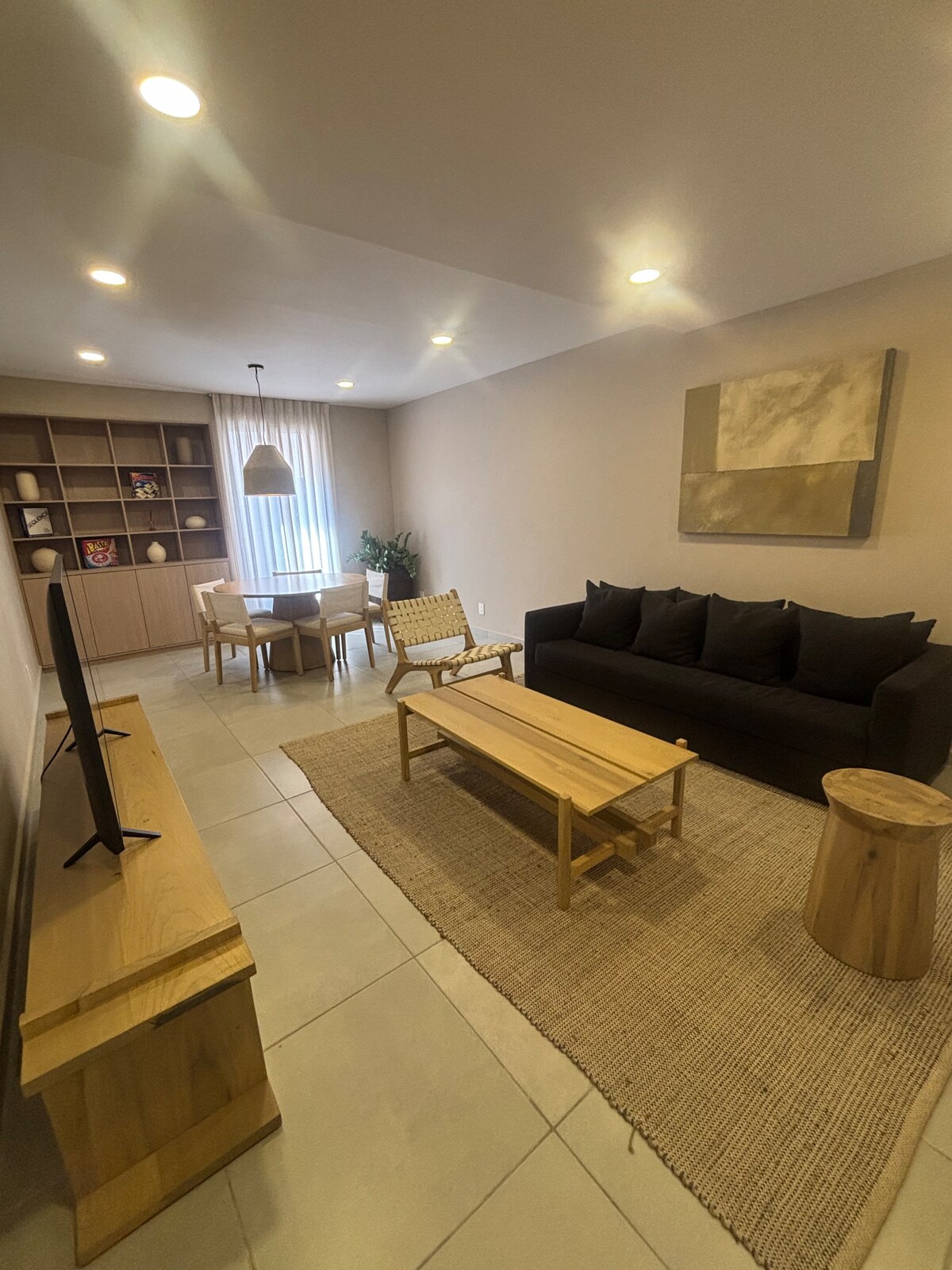 Spacious, cozy apartment, ideal for working with excellent internet! 100 Megas.Two large bedrooms both with air conditioning, full bathrooms, walk-in closet, and ceiling fan. TV room where a fifth person can sleep. Living+dining room with a large window, and 4 portable fans to move around any area. Fully equipped kitchen includes dishes for 6 people. Previous guests have praised our apartment for its stylish decor, comfortable amenities, and prime location near vibrant cafes and restaurants.