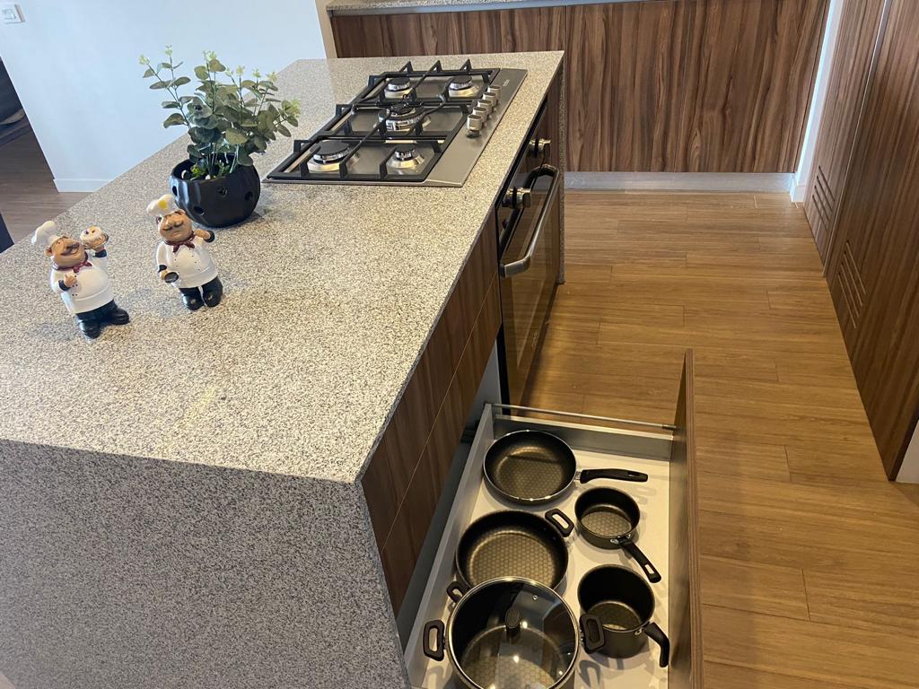 AHORA CON AIRE ACONDICIONADO EN CADA ESPACIO! Dos recámaras con walk in closet y baño privado cada una, más medio baño adicional. Una TV de 58" 4K, en recámara principal y otra en living room. Sala, comedor, cocina con granito, estufa, horno de convección y microondas, lavavajillas, filtro de agua de ósmosis inversa 6 etapas, refrigerador, despensa, cuarto de servicio, lavadora, secadora, lavadero. Cuenta con un balcón al frente y dos atrás. Estacionamiento cubierto disponible a su solicitud.