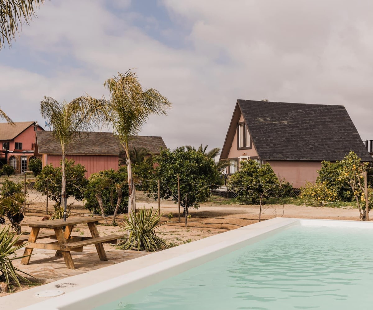 We invite you to enjoy your stay in Valle de Guadalupe in this beautiful cabin with rustic style. Do you need help with transportation? We can pick you up at the airport or across borders, complement your experience with a WINE ROUTE Tour, more info with the host. Capacity for 12 people or more. Restaurants, vineyards and markets are 5 minutes away, Ensenada is 15 minutes away. Enjoy a rainy day by the fireplace or take advantage of a sunny day by the pool and have a barbecue on the patio!